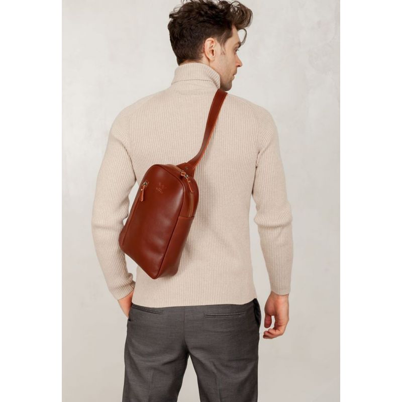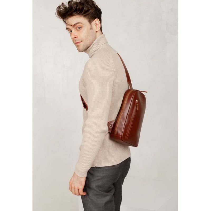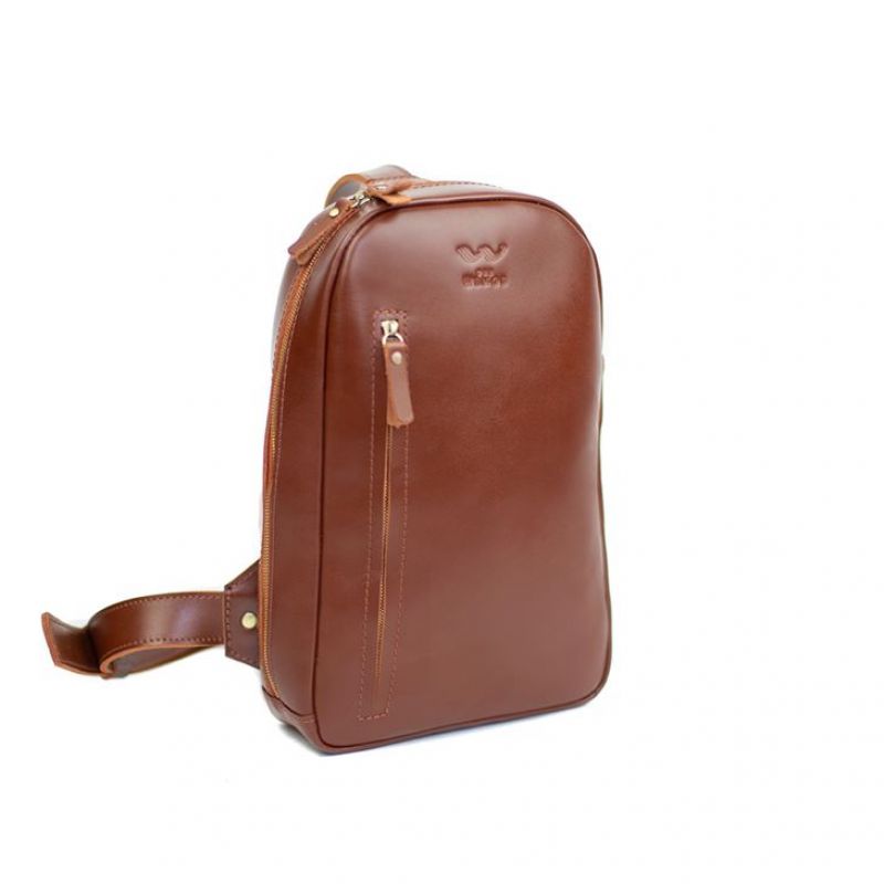 Мужская кожаная сумка Chest bag светло-коричневая