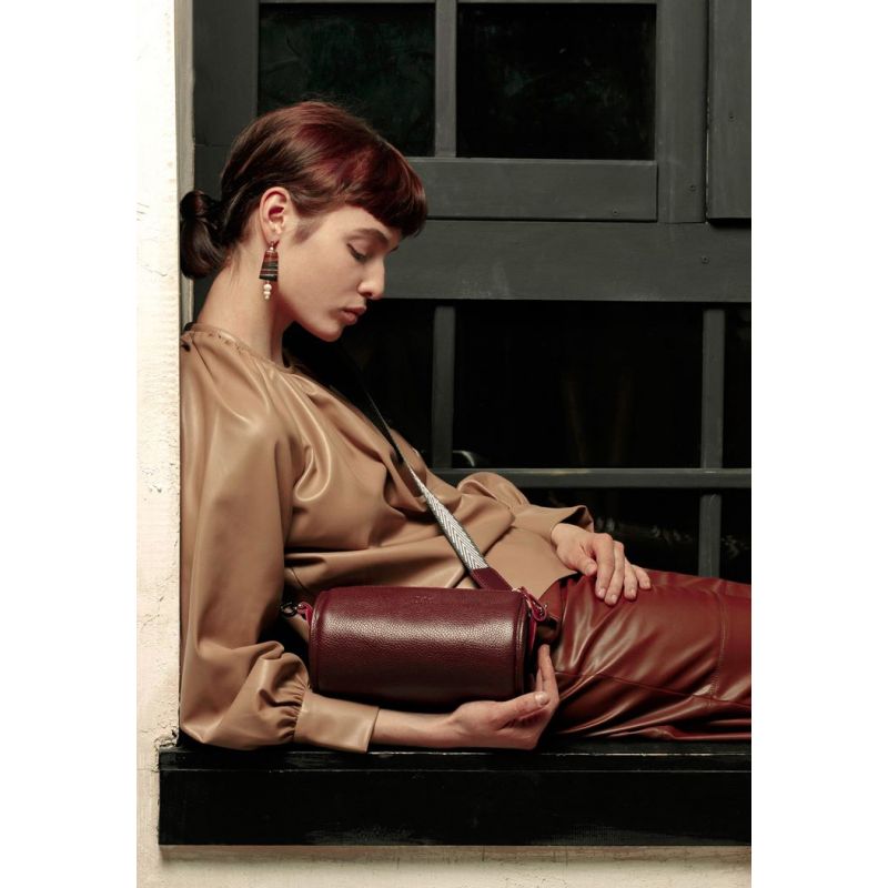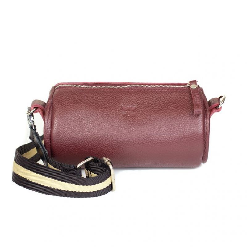 Кожаная сумка поясная-кроссбоди Cylinder бордовая флотар