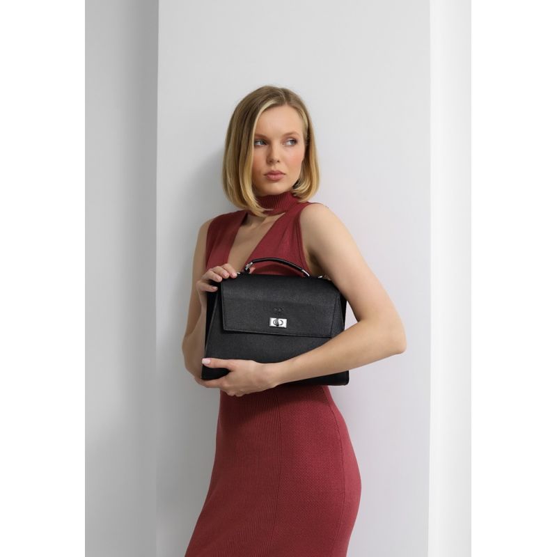 Размер: 22х29х11 см Материал: кожа, тканевый подклад Застегивается на молнию и поворотный замок Оснащен: - внешним карманом на молнии - внутренним карманом для мелочей В комплекте: съемная регулируемая шлейка через плечо Фурнитура: металлическая, цвет никель, молния – пластик (YKK)