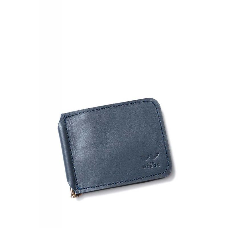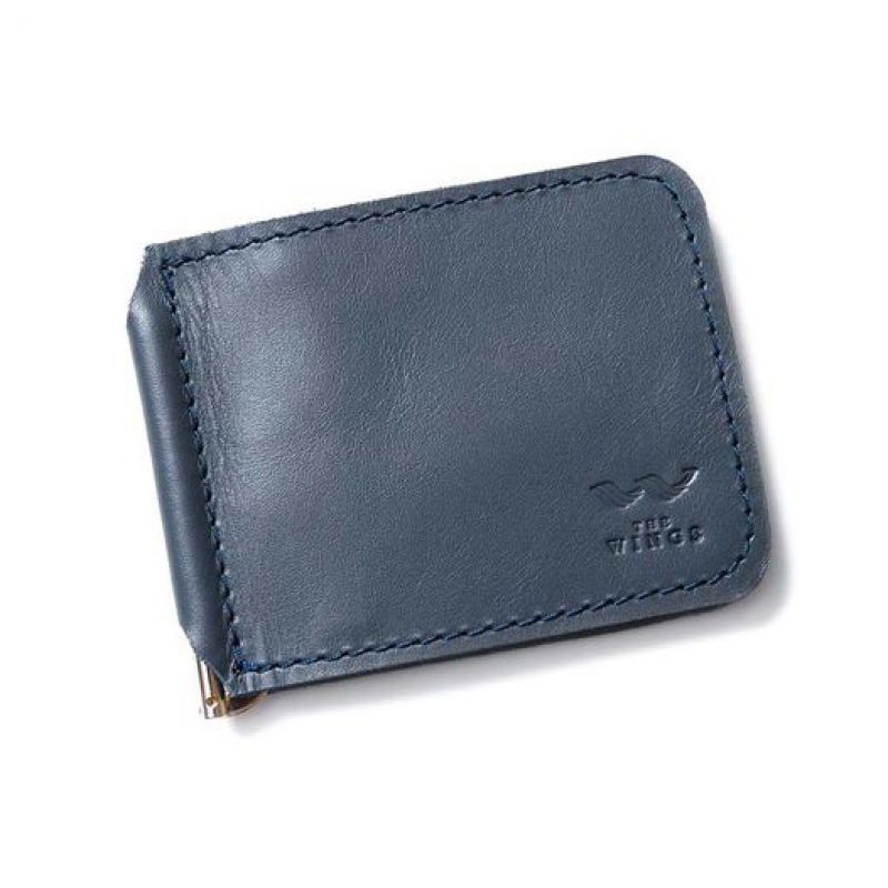 Кожаный зажим для денег темно-синий