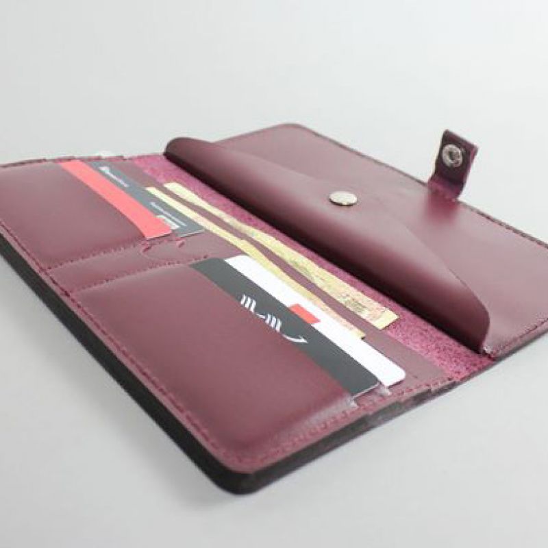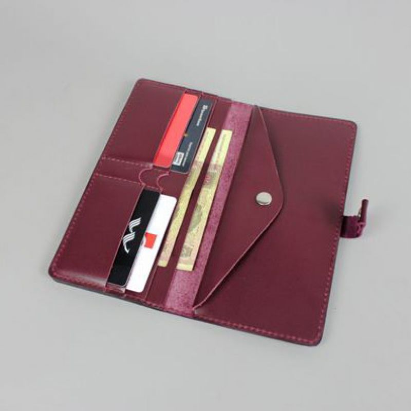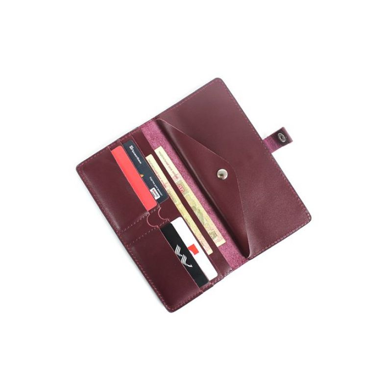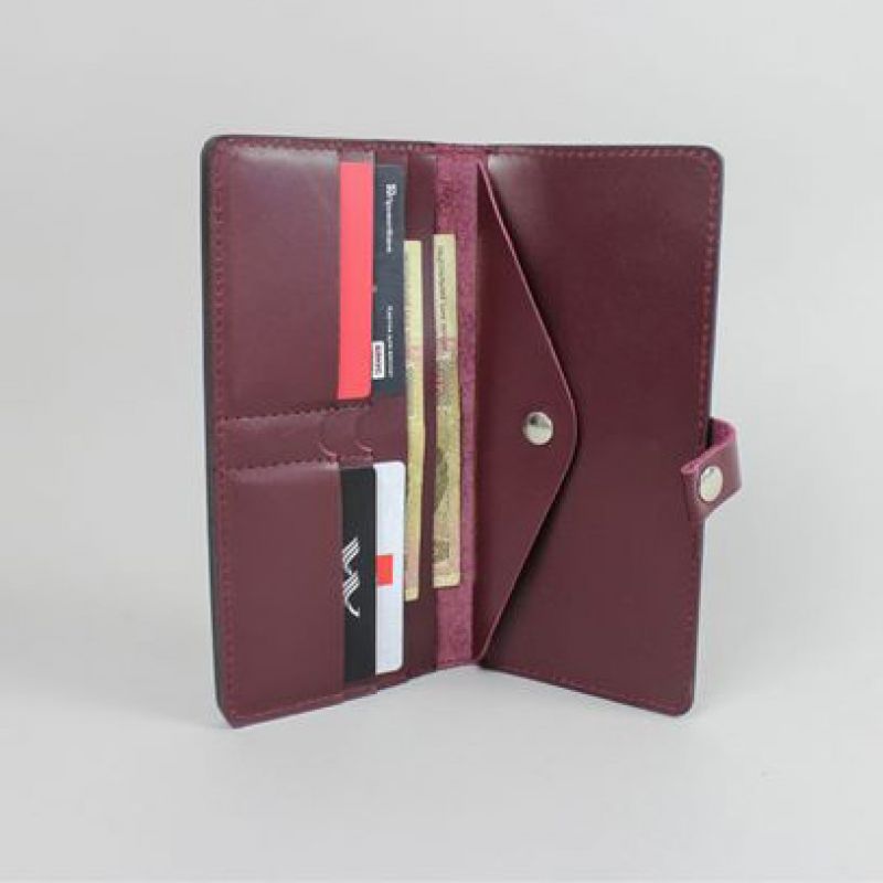 Размер: 21х10 см – в закрытом виде Материал: кожа Застегивается на кнопку Внутри: - 2 больших отделения для денег и прочих необходимых для путешествия документов - 1 отделение на кнопке - 4 отделения для карточек и визиток - 2 отделения для флешек