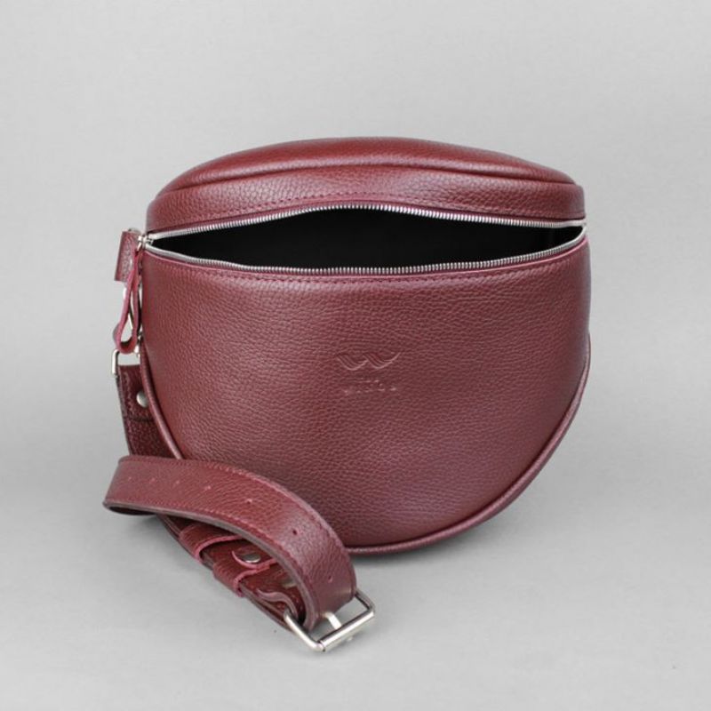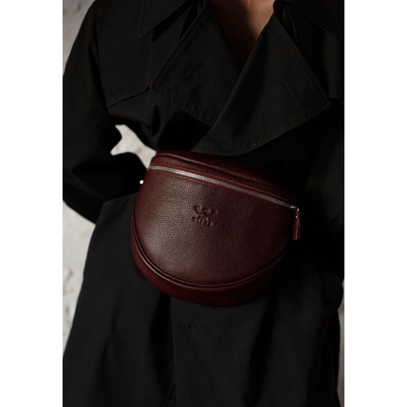 Кожаная сумка поясная-кроссбоди Vacation бордовая флотар