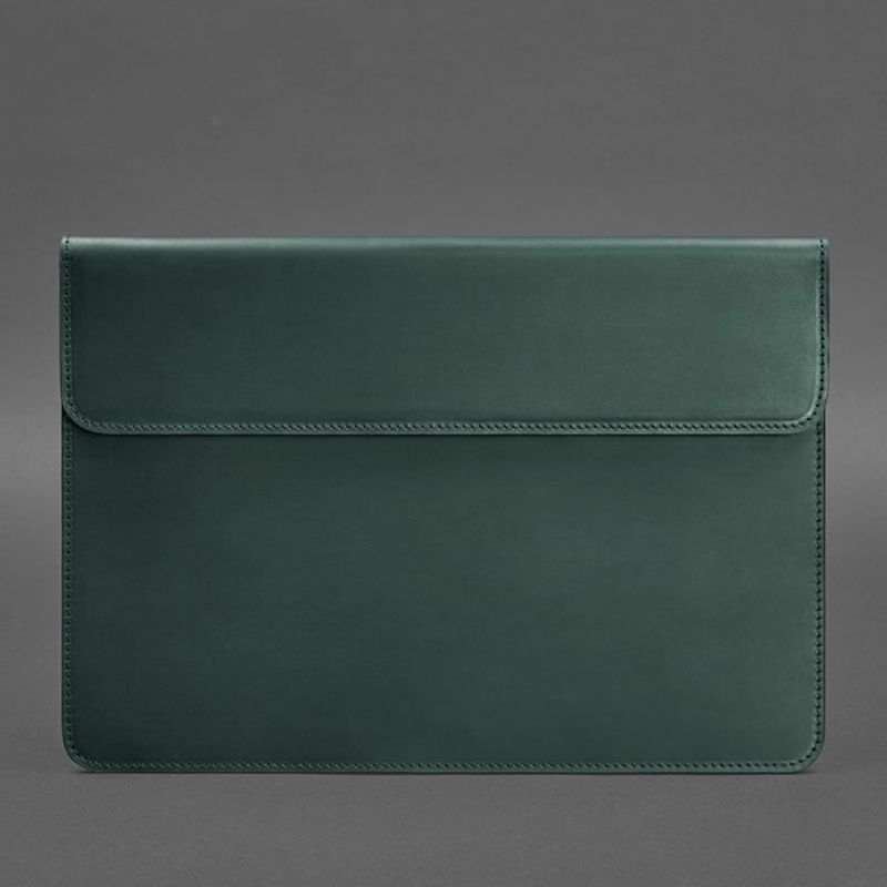Кожаный чехол-конверт на магнитах для MacBook Air 13'' (с 2018 года) и Pro 13'' (с 2016 года) изготовлен из высококачественной натуральной кожи. Стильный аксессуар, который защитит ваше устройство от сколов, царапин, пыли и грязи! Внутренняя поверхность аксессуара способствует максимальной защите корпуса ноутбука от износа. Чехол оснащен клапаном с потайными магнитами, который надежно фиксирует ноутбук внутри аксессуара. Лаконичный дизайн и красивый зеленый цвет чехла подойдет и мужчинам, и женщинам.  Чехол предназначен для любых моделей ноутбуков и планшетов, которые сопоставимы по размеру к MacBook Pro 13" . Аксессуар идеально совместим со всеми ноутбуками компании Apple, с диагональю 13,3 дюйма. Обратите внимание! В нашем магазине Бланкнот вы можете заказать кожаный чехол для ноутбука с любыми изменениями. Наши мастера могут изготовить чехол по параметрам Вашего ноутбука, можно убрать или заменить логотип на чехле, также Вы можете воспользоваться услугой персонализации изделий. Гарантия на аксессуар - 3 года с момента покупки. ВНИМАНИЕ! Выделка данной кожи предполагает естественное появление на ней царапин и потертостей в ходе использования! От этого изделие становится более индивидуальным и приятным, это оценят настоящие поклонники винтажного стиля:)  А так же первое время кожа может краситься при сильном трении об другие предметы  - это особенность её выделки, постепенно этот эффект уменьшается,  кожа полируется и приобретает чуть глянцевый эффект. Фурнитура и комплектация может быть изменена производителем