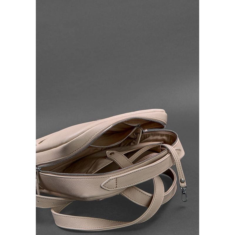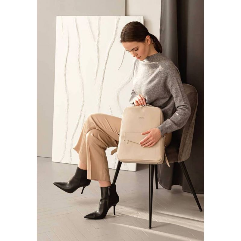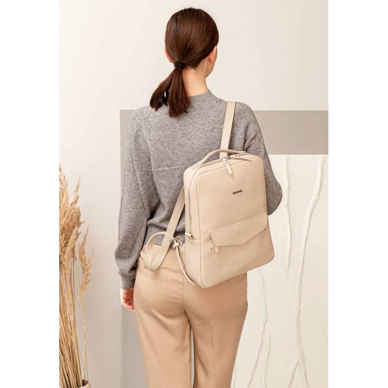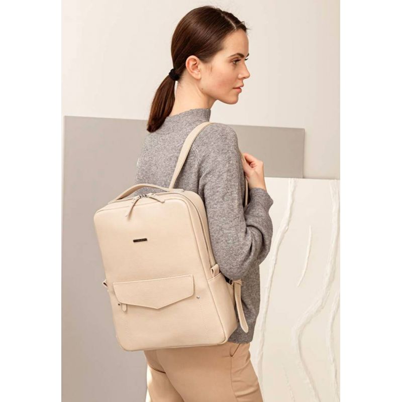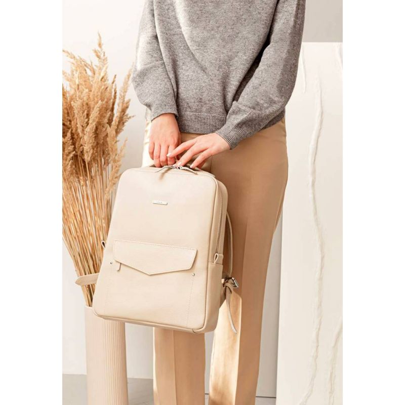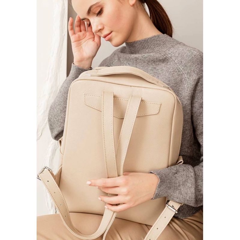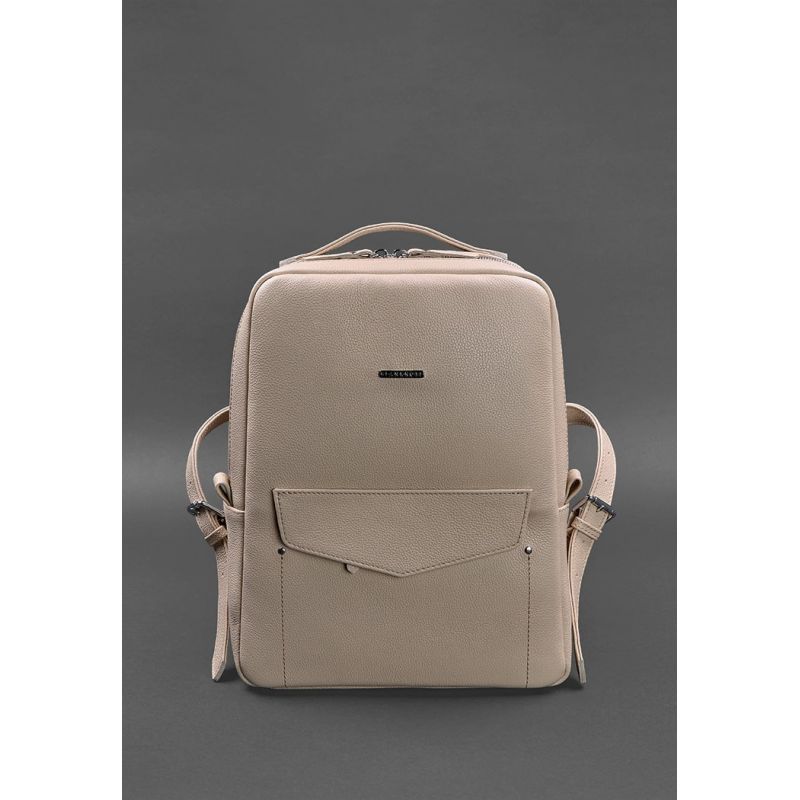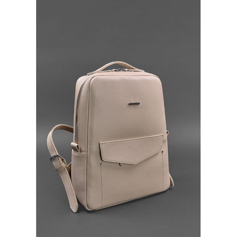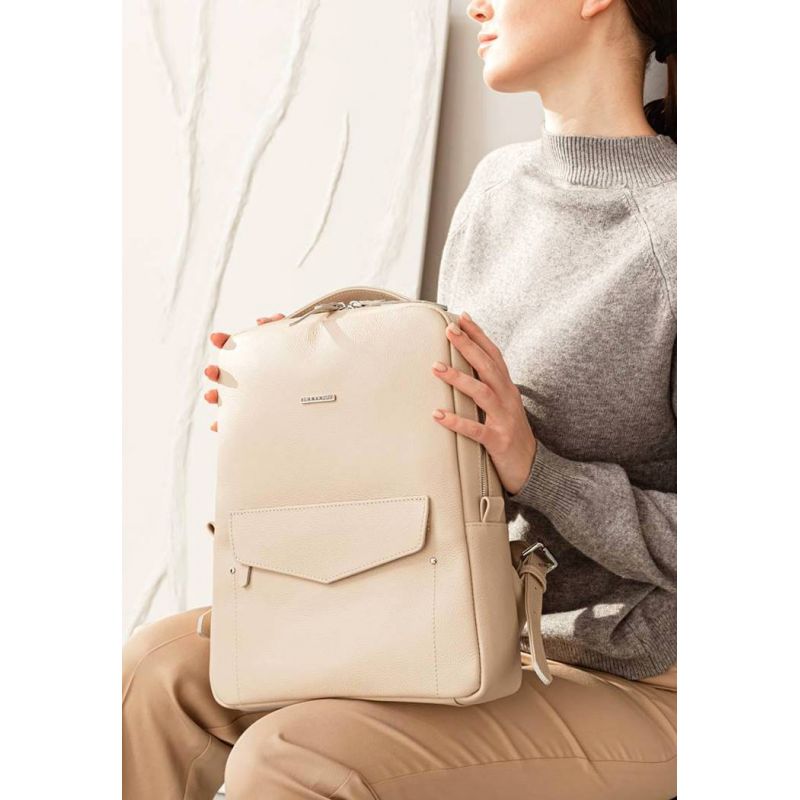 Кожаный женский городской рюкзак на молнии Cooper светло-бежевый флотар