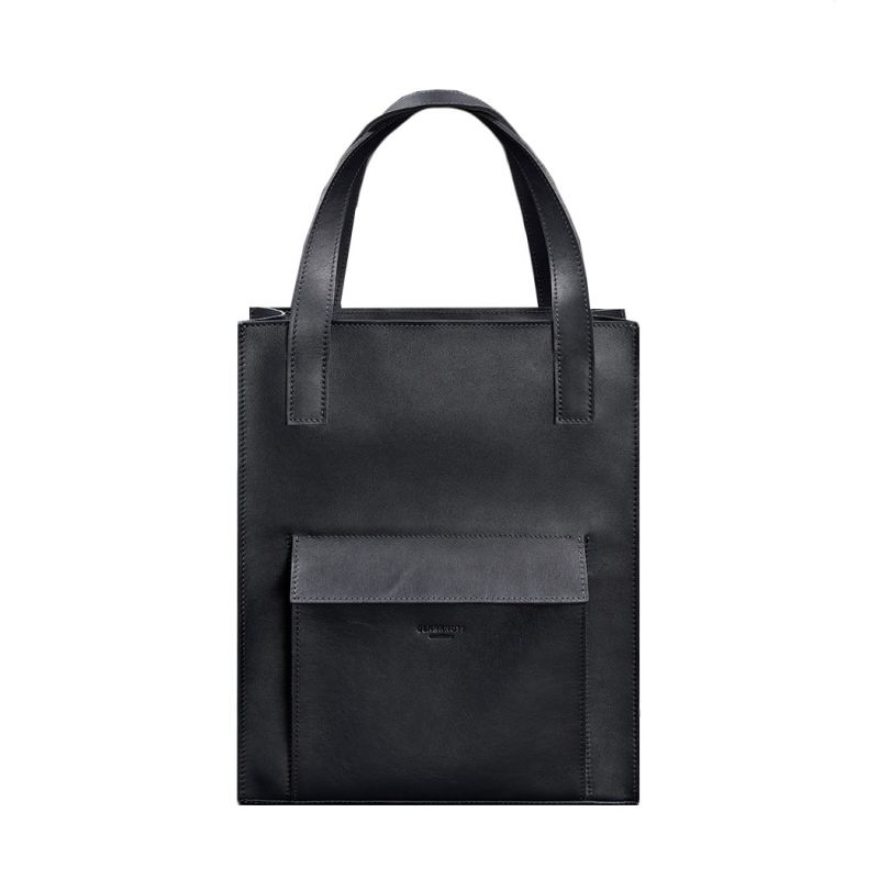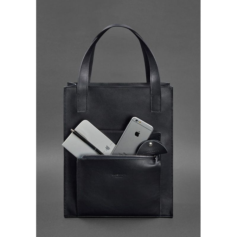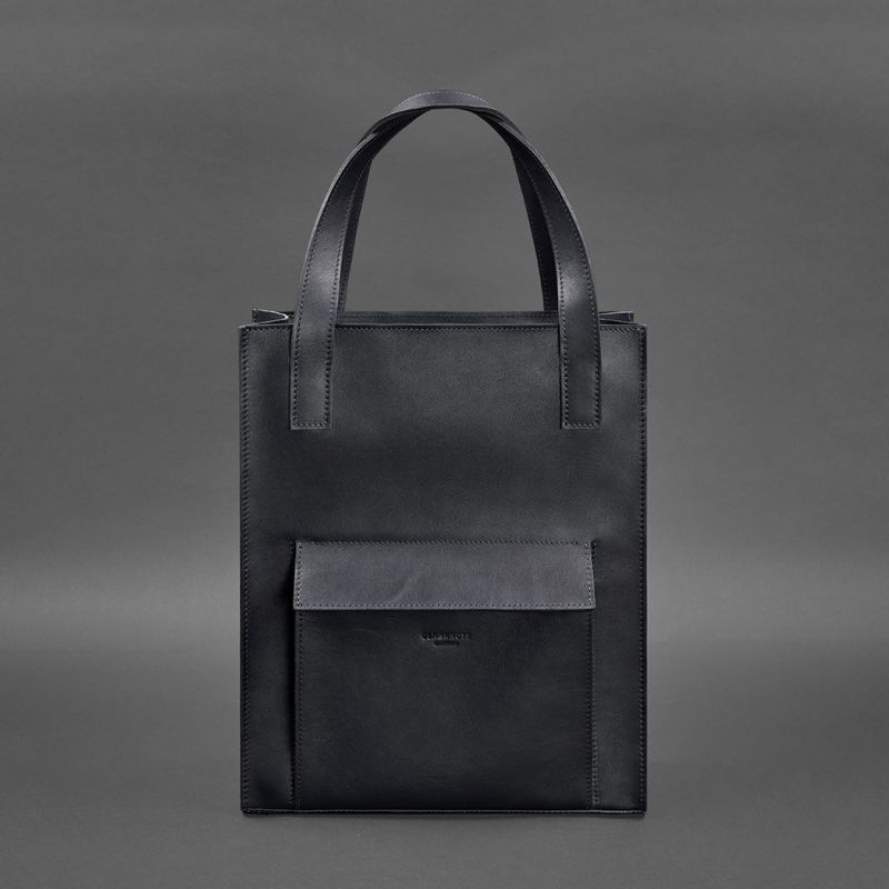 Кожаная женская сумка шоппер Бэтси с карманом синяя Краст