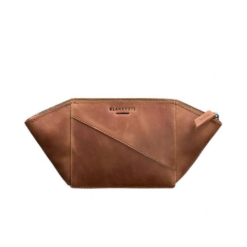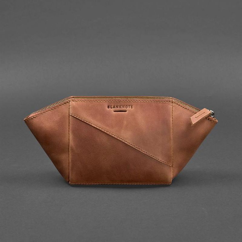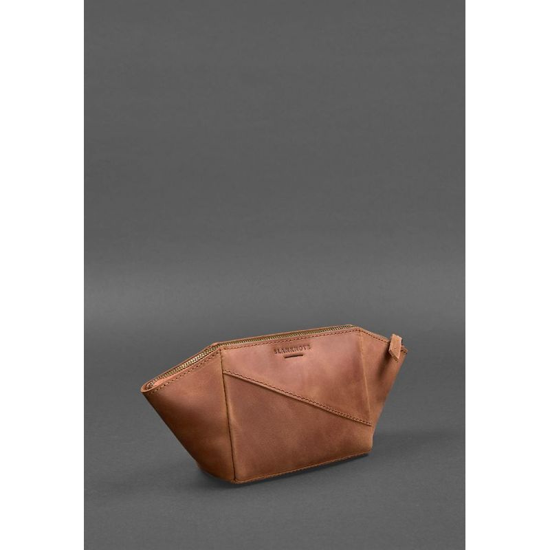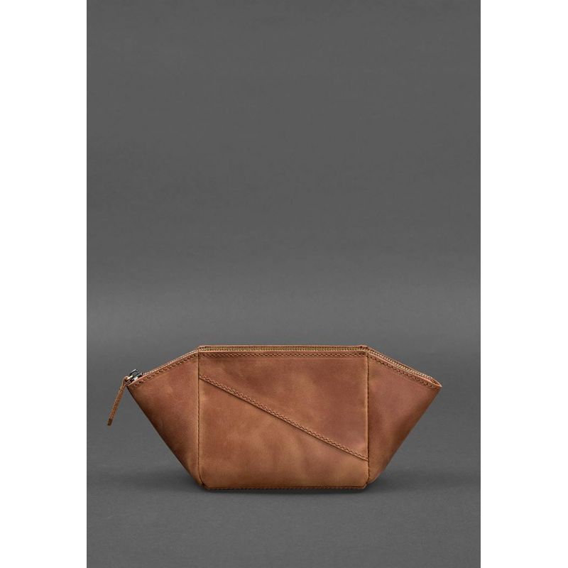 Женская кожаная косметичка 2.0 светло-коричневая Crazy Horse