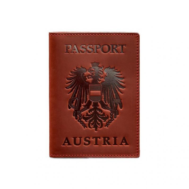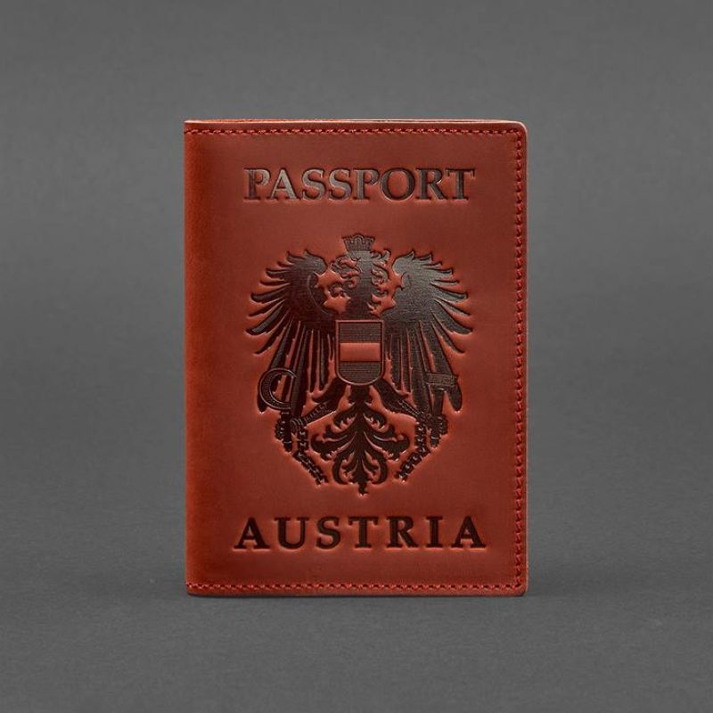 Кожаная обложка для паспорта с австрийским гербом коралл