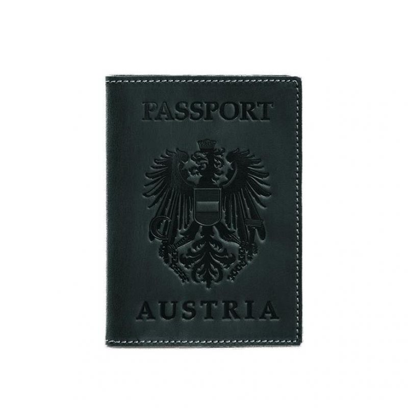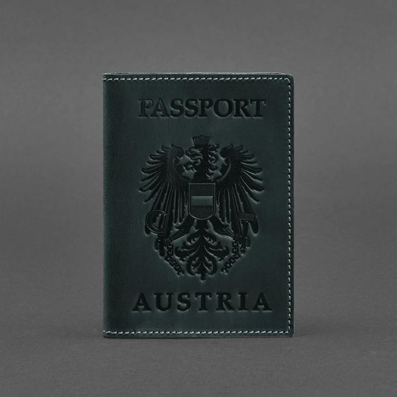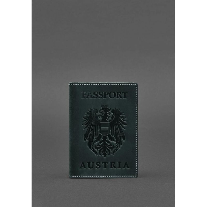 Кожаная обложка для паспорта с австрийским гербом зеленая Crazy Horse