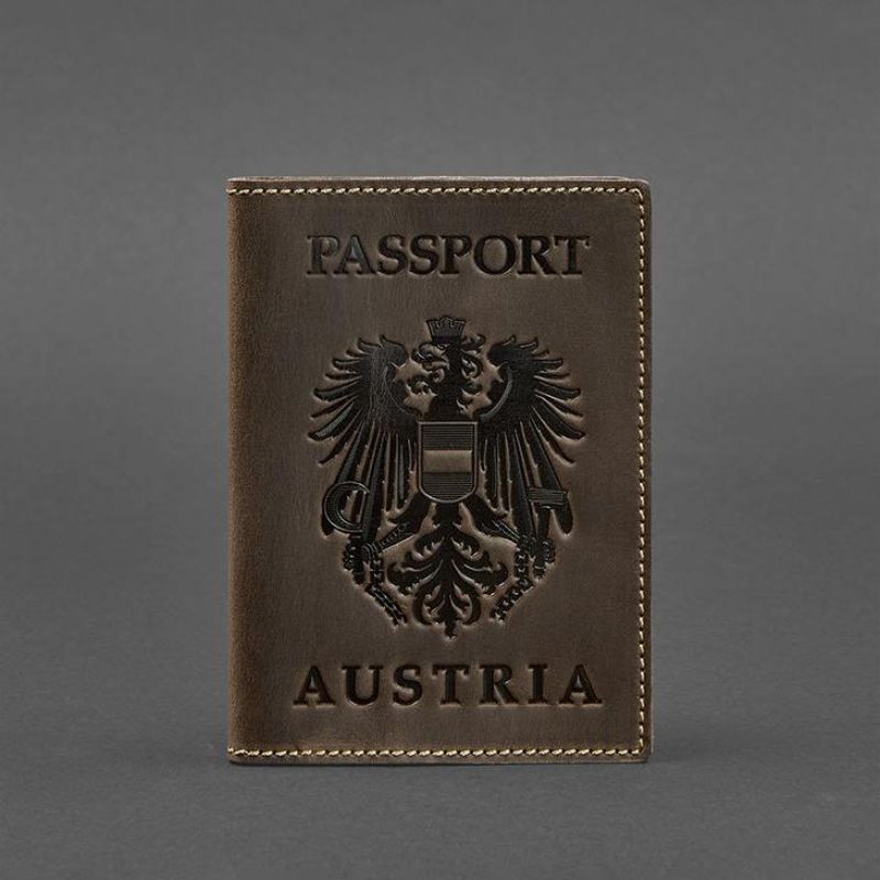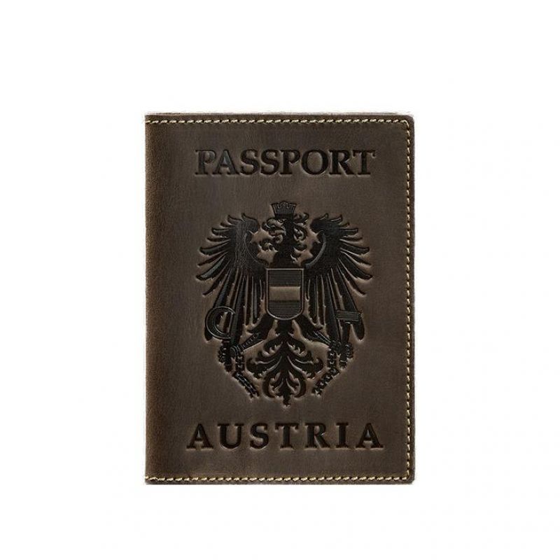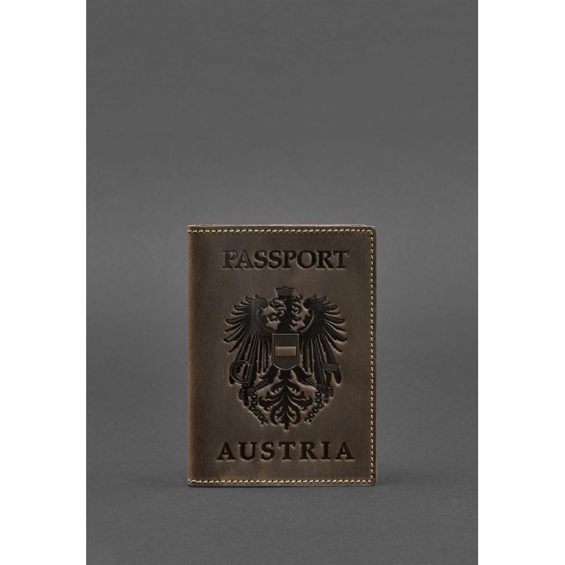 Кожаная обложка для паспорта с австрийским гербом темно-коричневая Crazy Horse