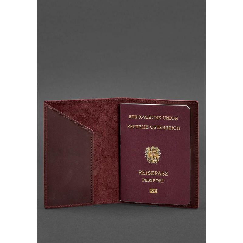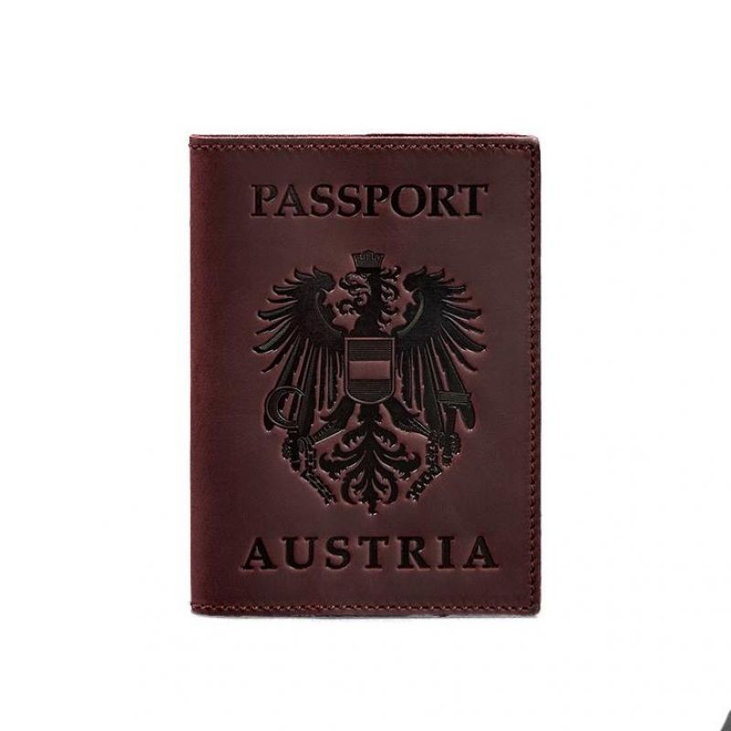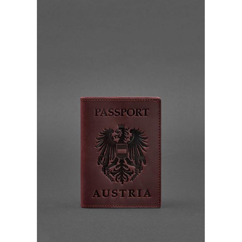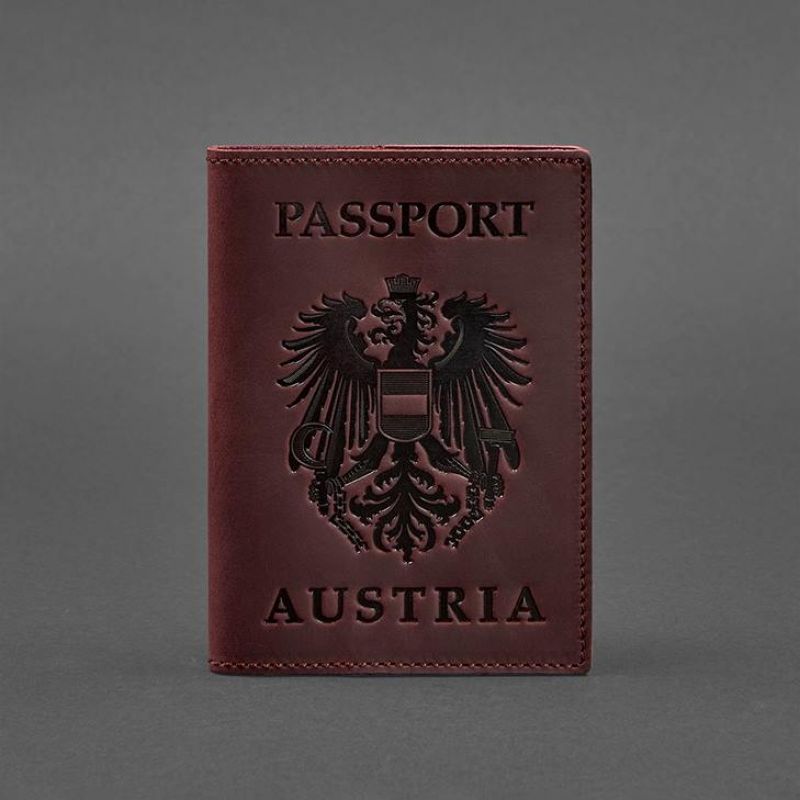 Кожаная обложка для паспорта с австрийским гербом бордовая Crazy Horse