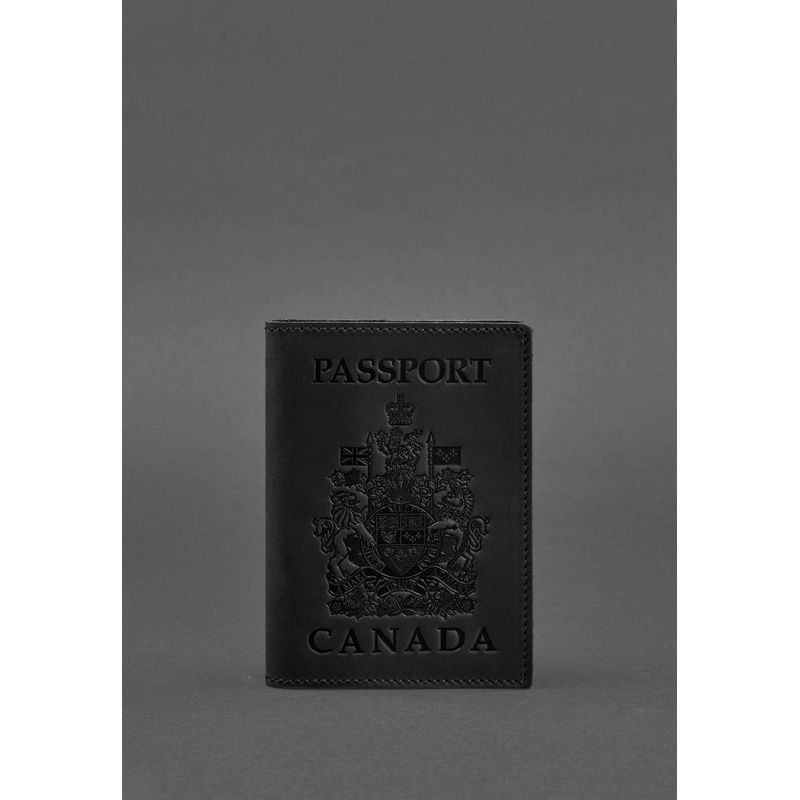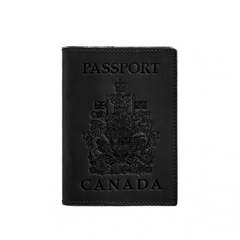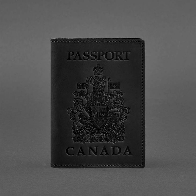 Кожаная обложка для паспорта с канадским гербом черная Crazy Horse
