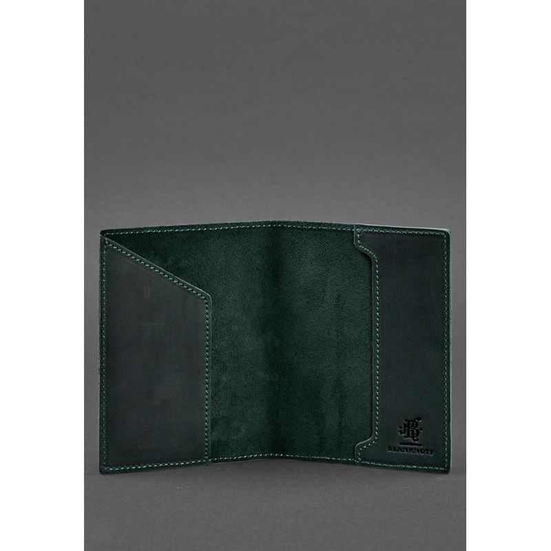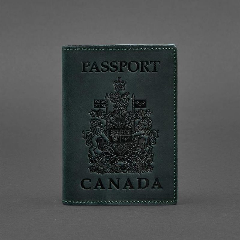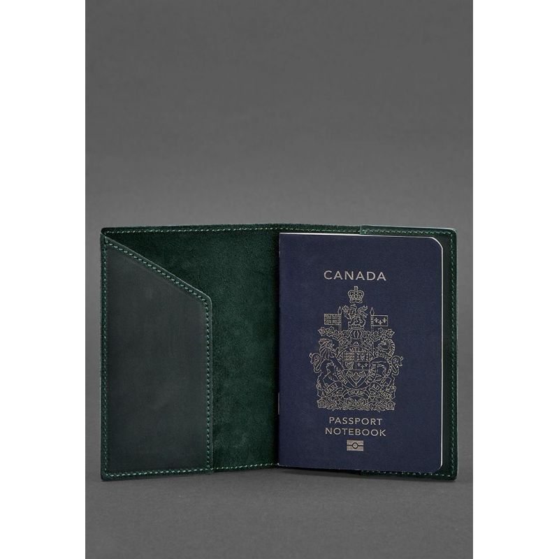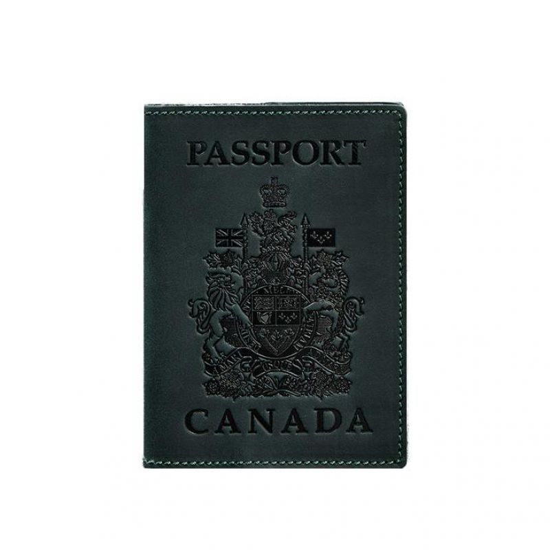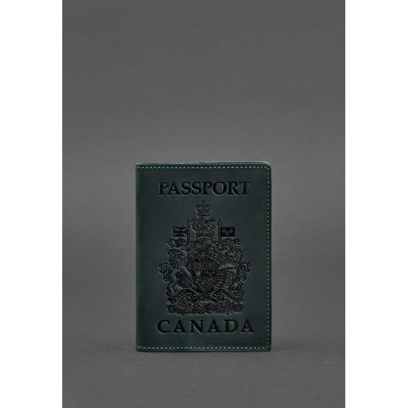Кожаная обложка для паспорта с канадским гербом зеленая Crazy Horse