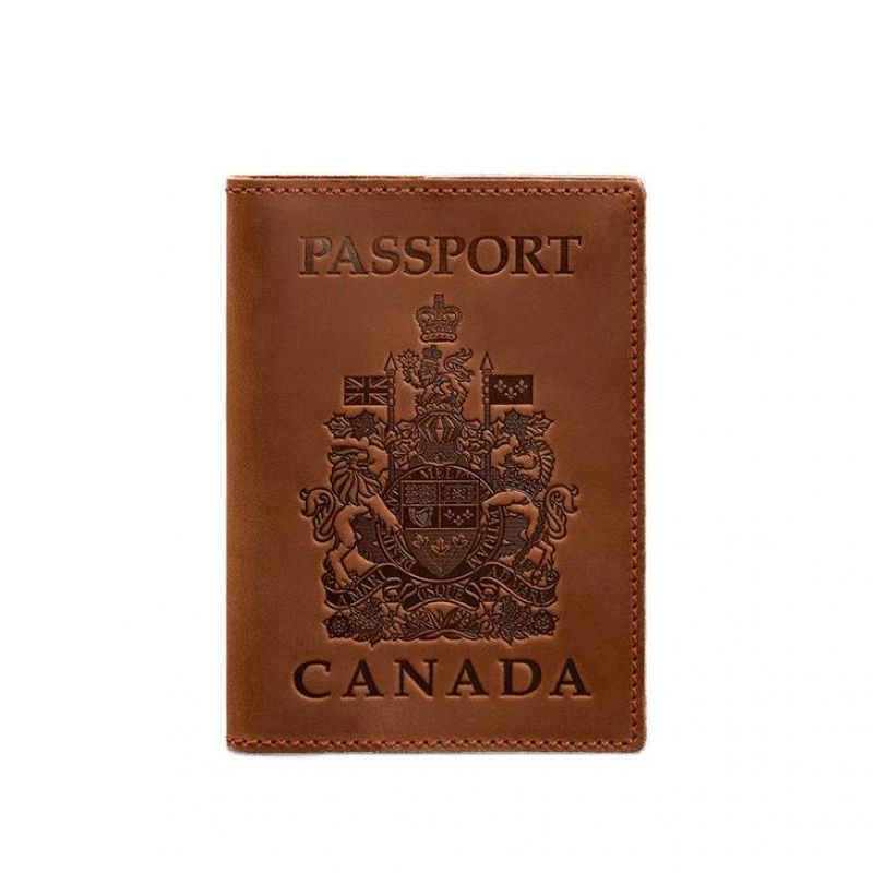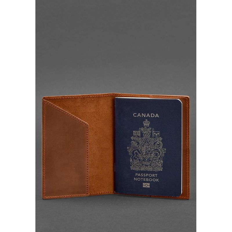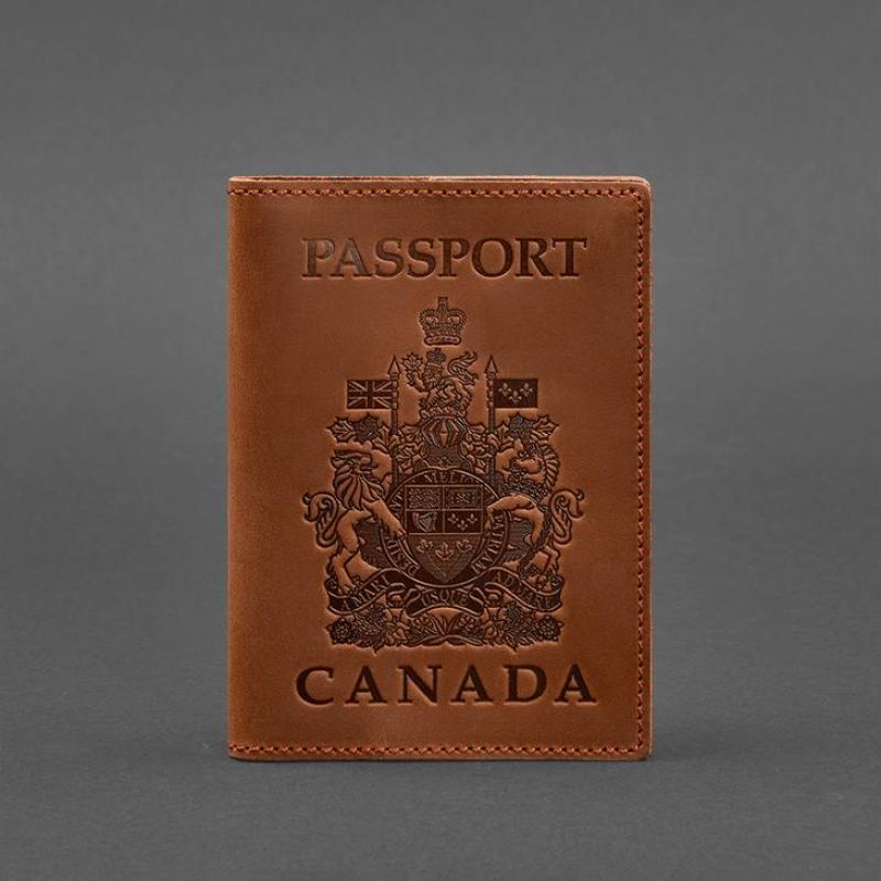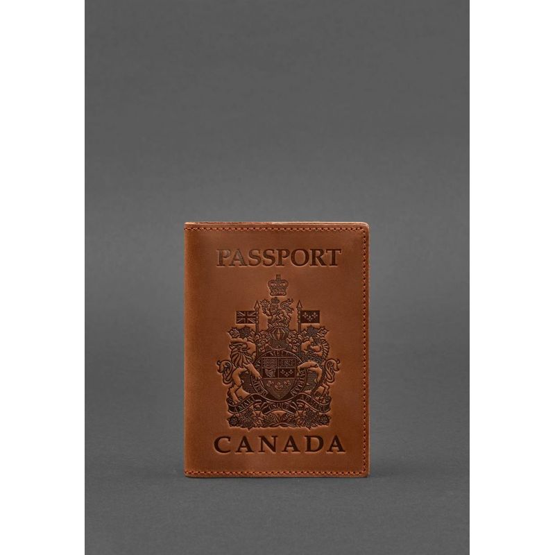 Кожаная обложка для паспорта с канадским гербом светло-коричневая Crazy Horse