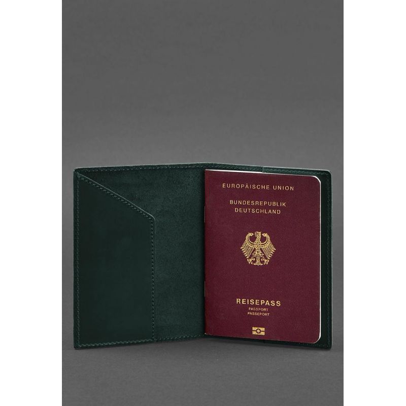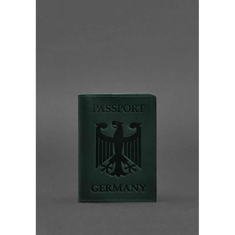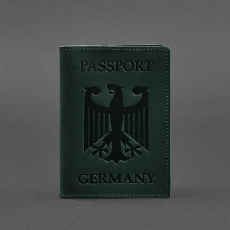 Кожаная обложка для паспорта с гербом Германии зеленая Crazy Horse