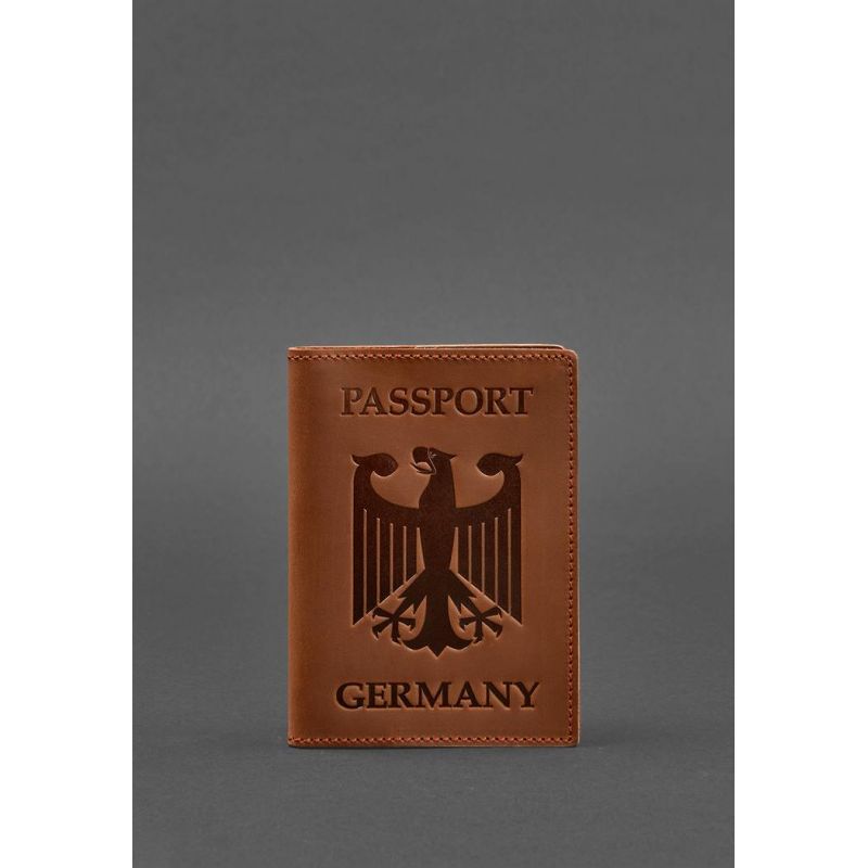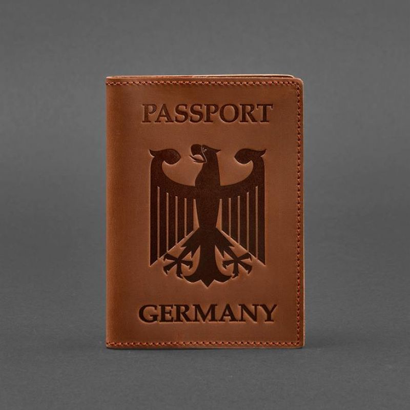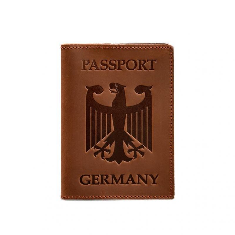 Кожаная обложка для паспорта с гербом Германии светло-коричневая Crazy Horse