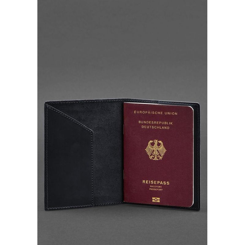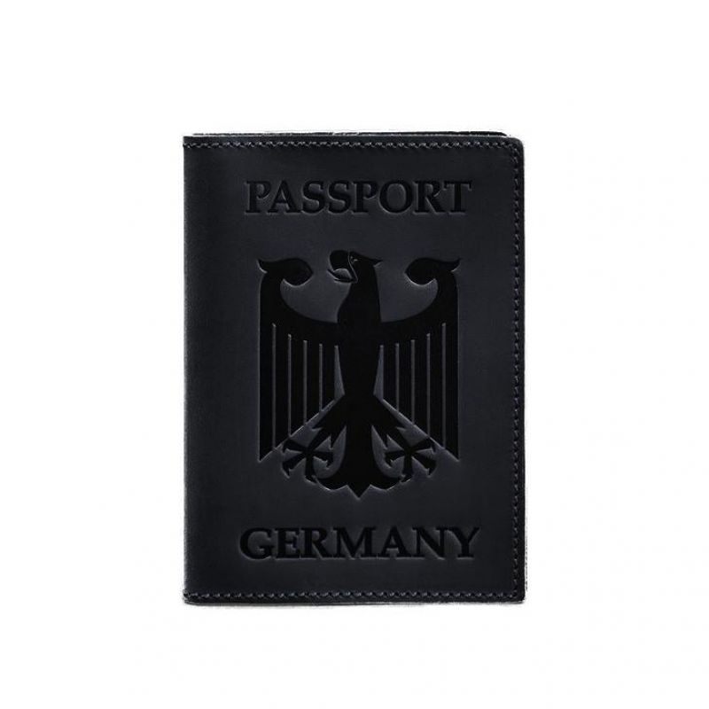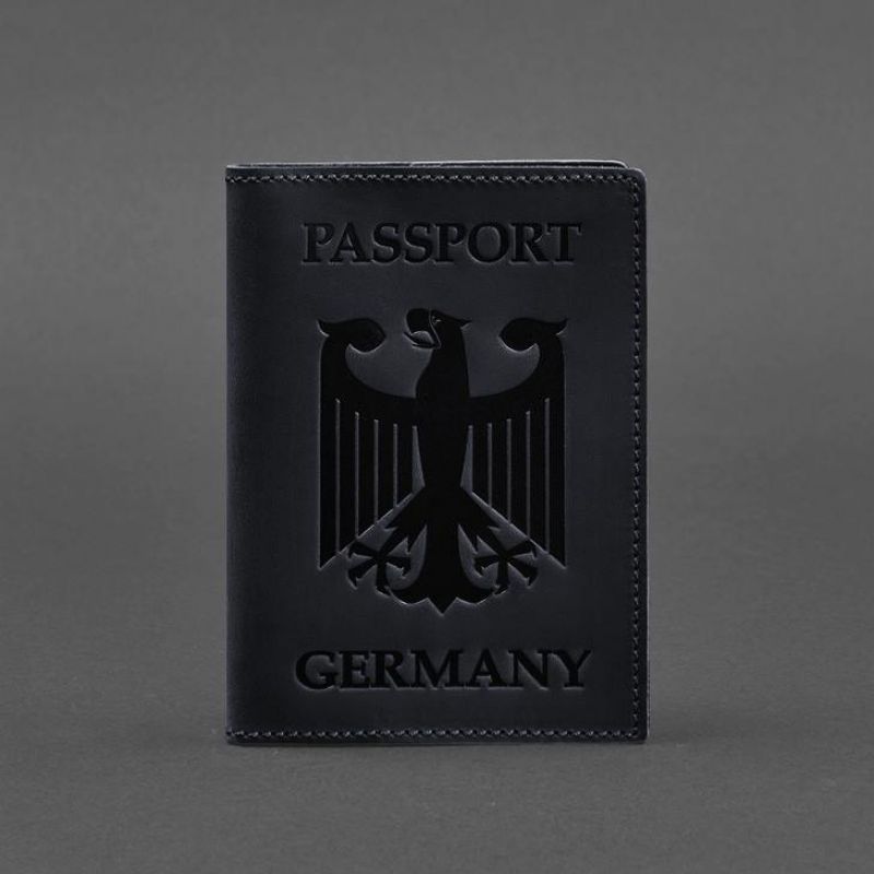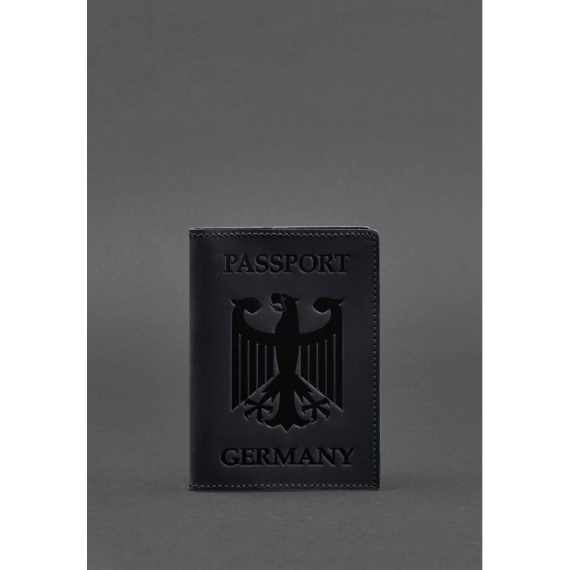 Кожаная обложка для паспорта с гербом Германии темно-синяя Crazy Horse