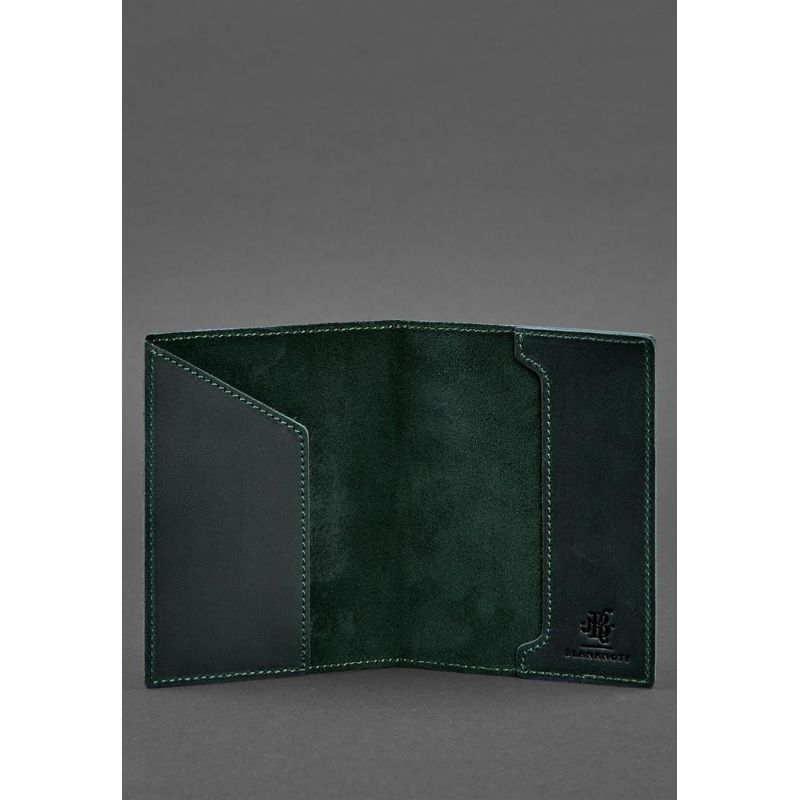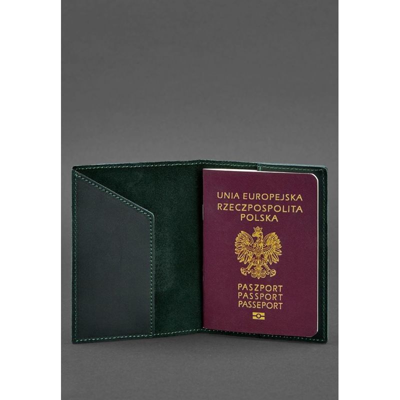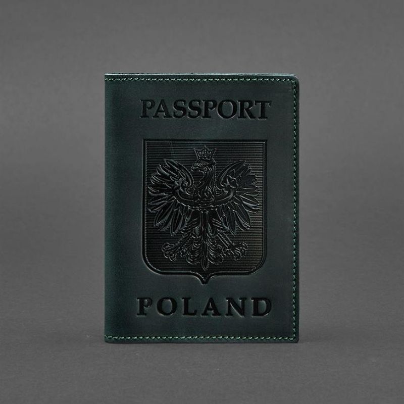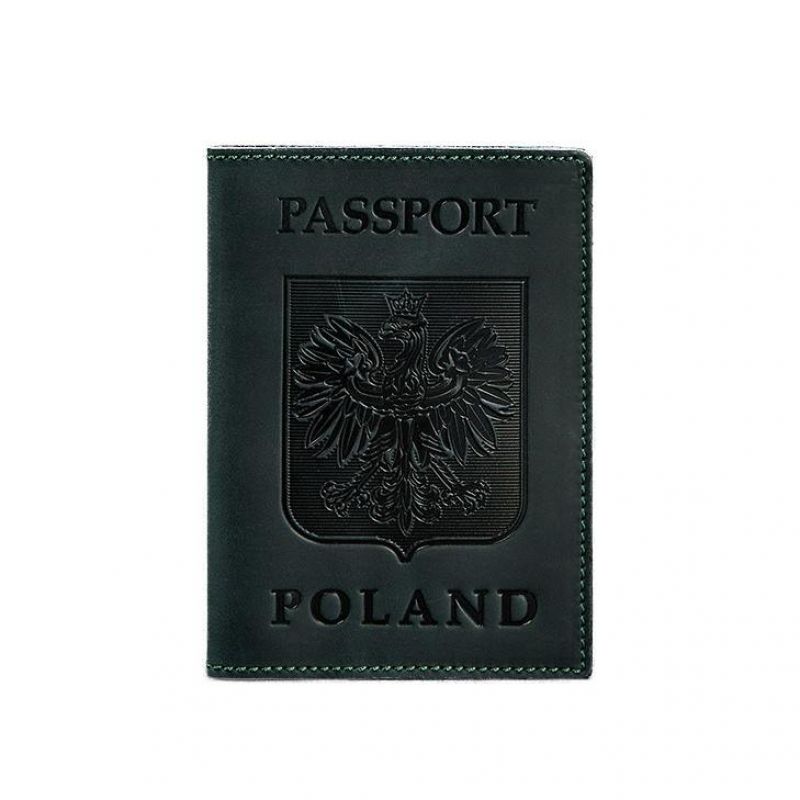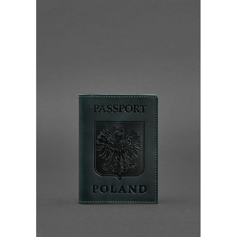 Кожаная обложка для паспорта с польским гербом зеленая Crazy Horse