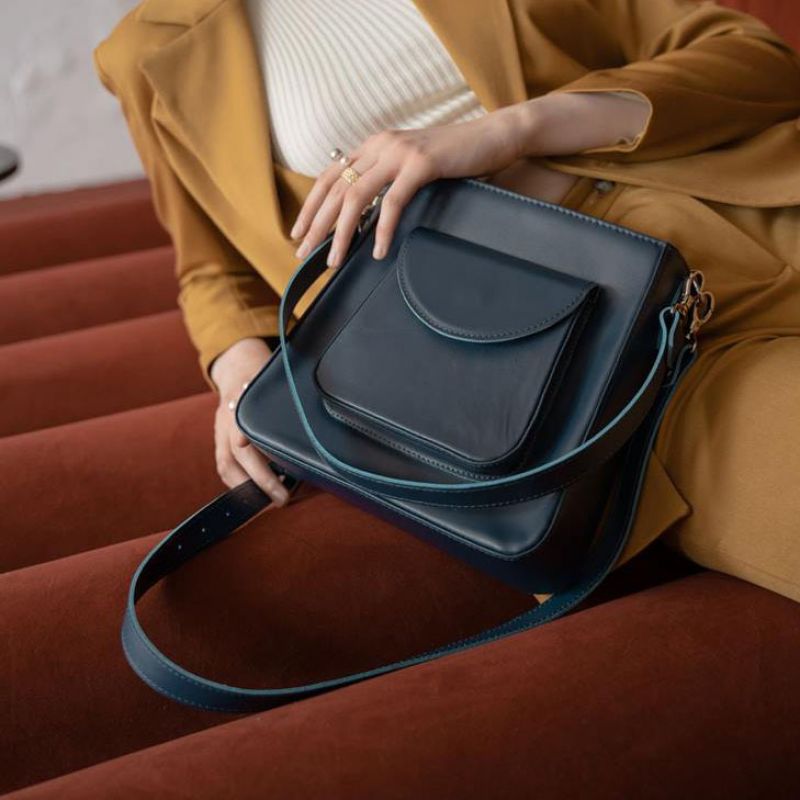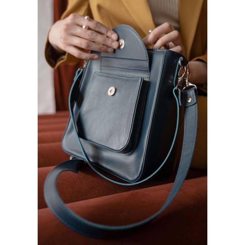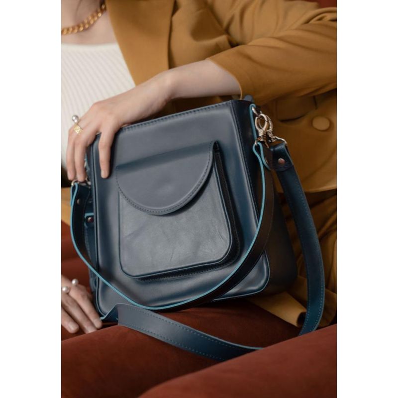 Женская кожаная сумка Stella темно-синяя