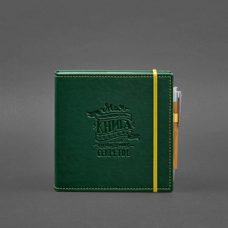 Кук-бук для записи рецептов Книга кулинарных секретов в зеленой обложке