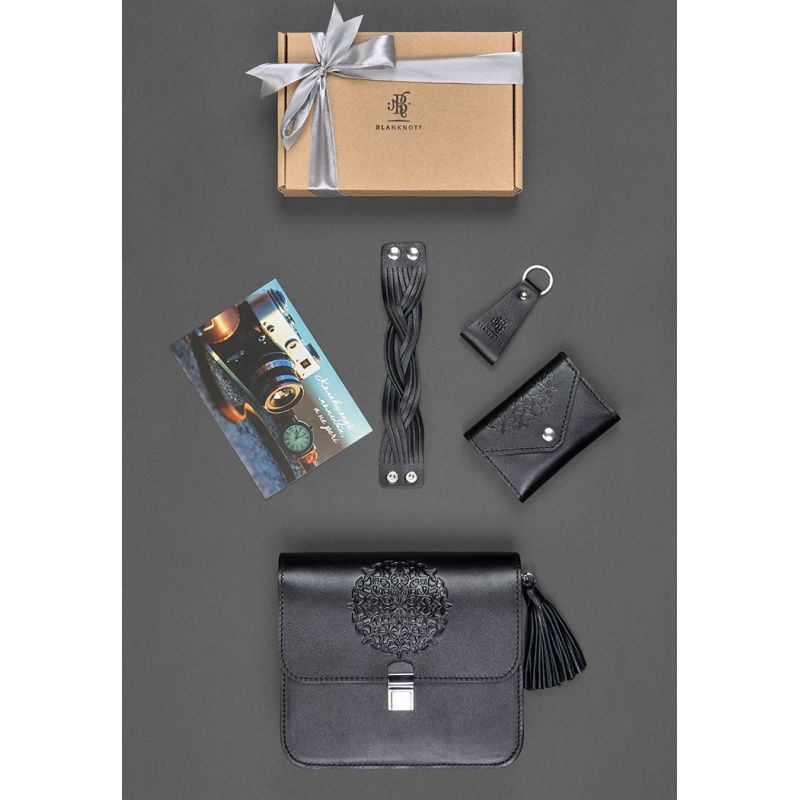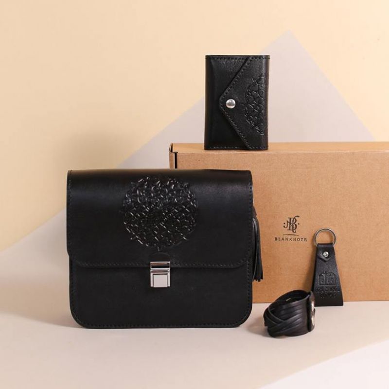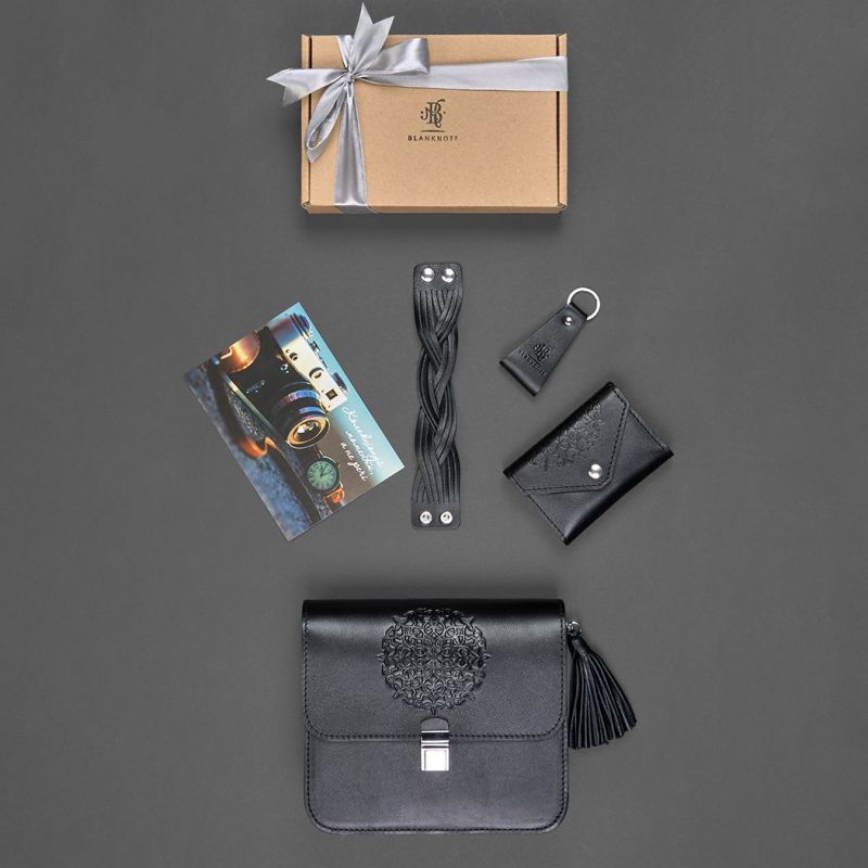 Как часто при выборе подарка мы мечемся из магазина в магазин, перерываем тонны информации на сайтах в поисках достойного подарка для друга, коллеги или члена семьи. Чтобы сделать вашу жизнь проще, а выбор подарков не утомительным, мастерская BlankNote создала подарочные наборы из самых необходимых предметов в повседневной жизни. Мы подобрали изделия, которые дополняют друг друга по функционалу, стилю, а также цветовой гамме.  В набор аксессуаров "Денвер" входит:  Черная сумка "Лилу" - удобство, красота и функциональность, уместна к любому образу;  Кожаный женской кард-кейс 3.0 черный с мандалой – вместительный и невероятно красивый;  Кожаный браслет косичка черный - дополняет особым шармом;  Брелок. Верный спутник для ваших ключей.  Дизайнерская открытка - для важных слов.  Подарочный набор упакован в крафтовую коробку и заботливо перевязан атласной лентой. Все, что вам предстоит сделать, это заказать и презентовать восхитительный подарок - набор аксессуаров "Денвер" . Меньше времени на раздумья, что подарить, больше на приятные приготовления! Фурнитура и комплектация может быть изменена производителем