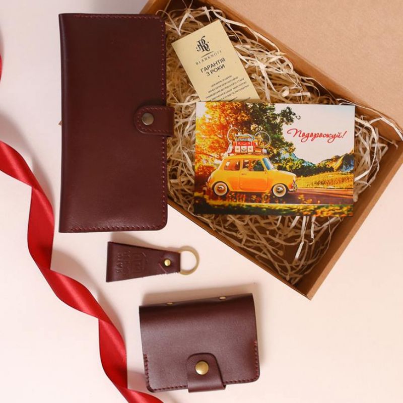 - Портмоне (19х9 см), кард-кейс (10х8 см), брелок (4х4 см), открытка (10х15 см)
