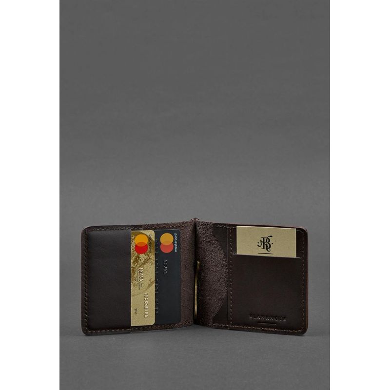 Мужское кожаное портмоне коричневое 1.0 зажим для денег