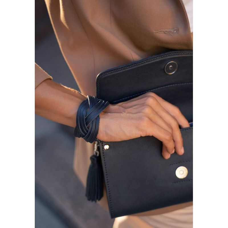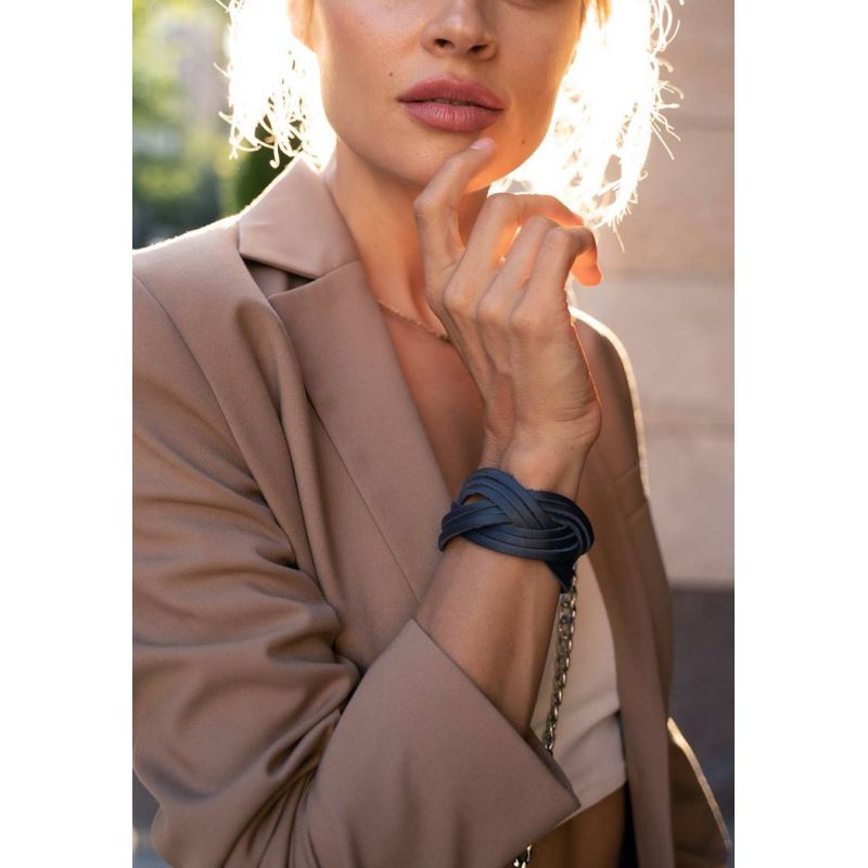 Кожаный браслет косичка темно-синий