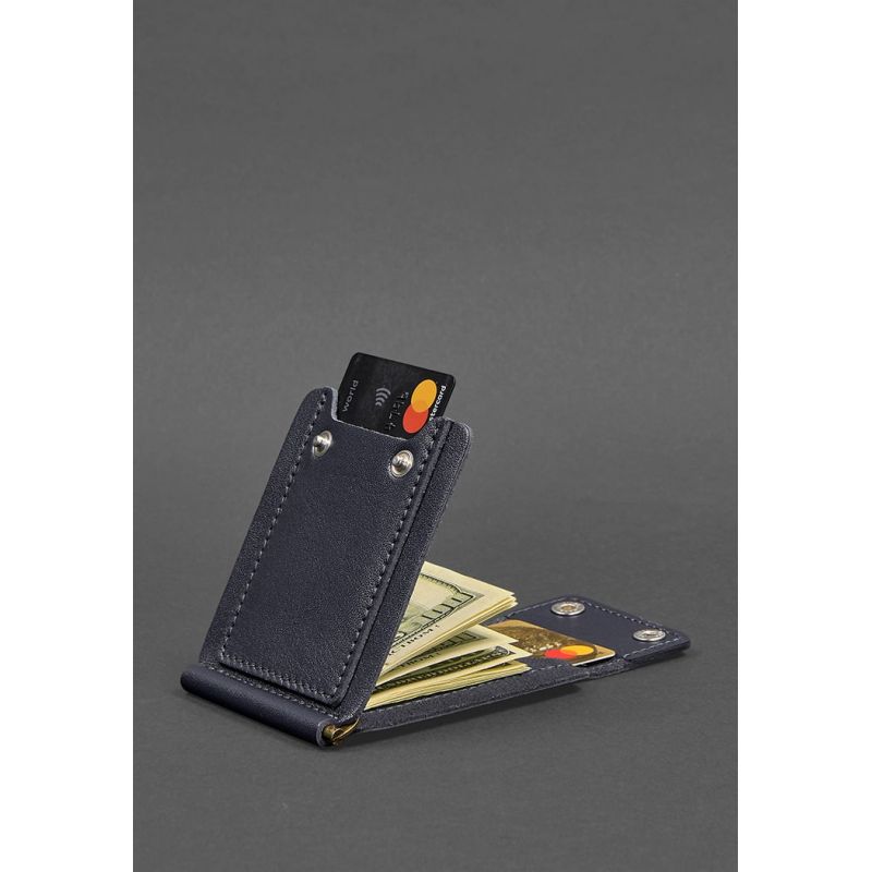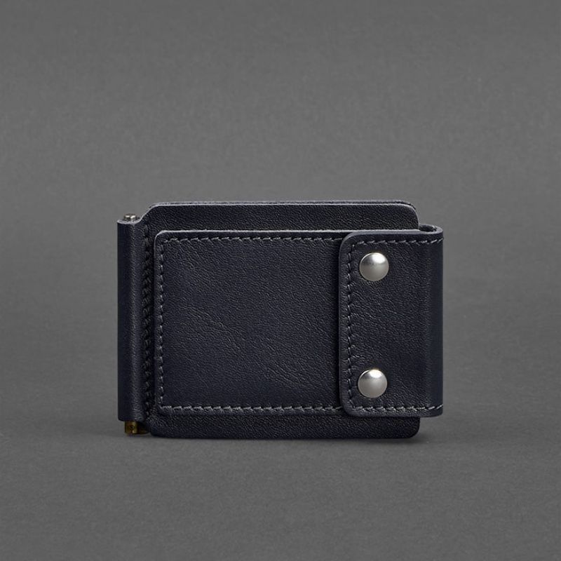Мужское кожаное портмоне 10.0 зажим для денег темно-синий