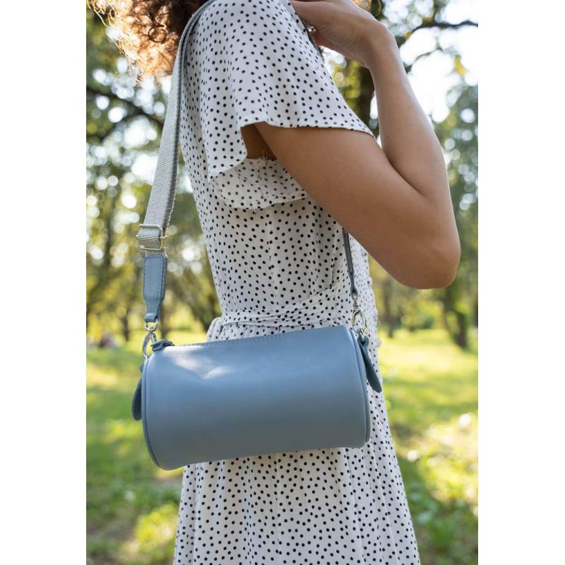 Кожаная сумка поясная-кроссбоди Cylinder голубая