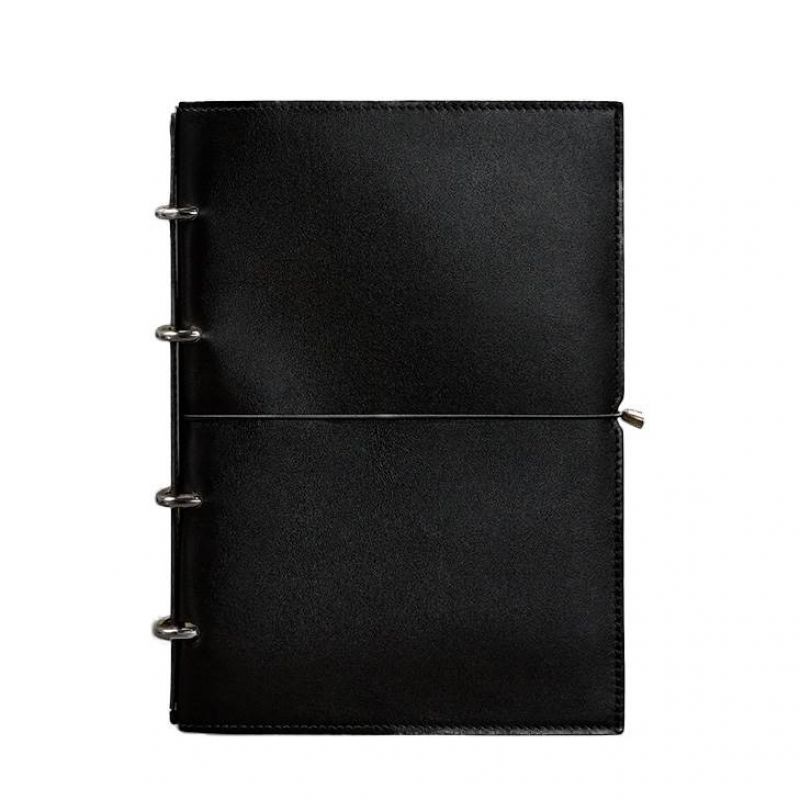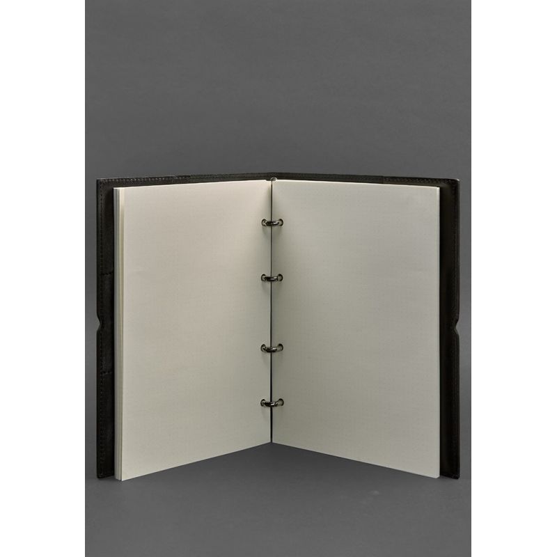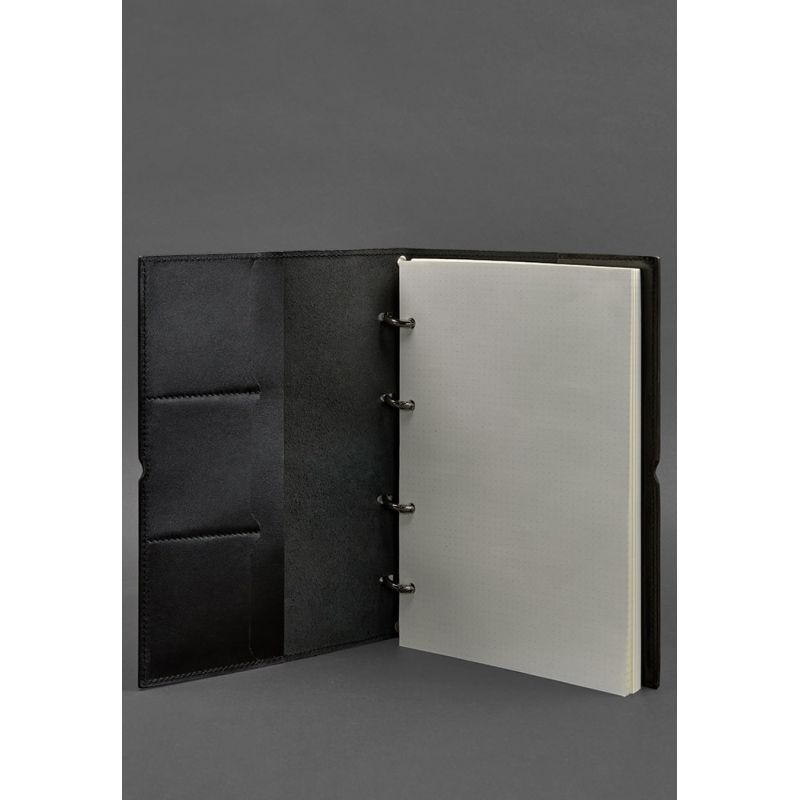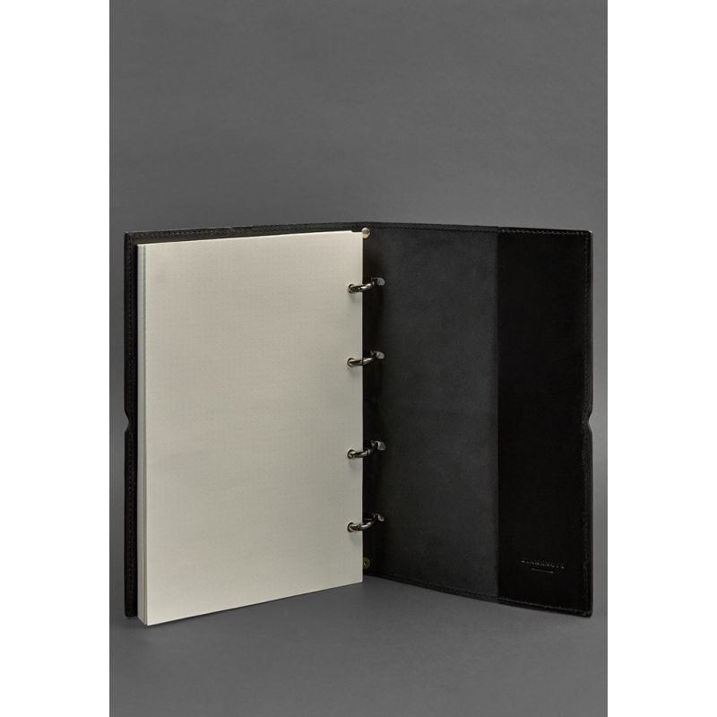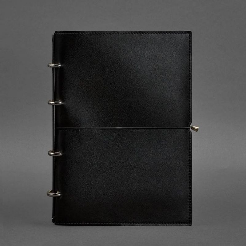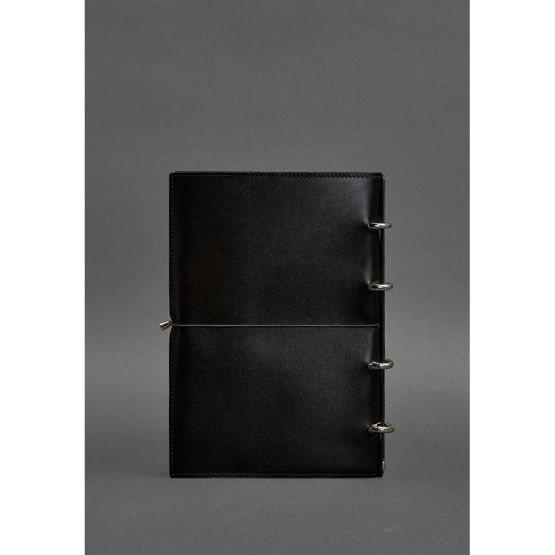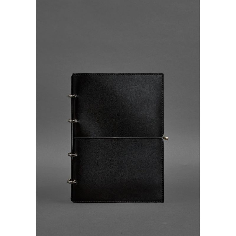 Кожаный блокнот А4 на кольцах (софт-бук) 9.0 в мягкой обложке черный глянец