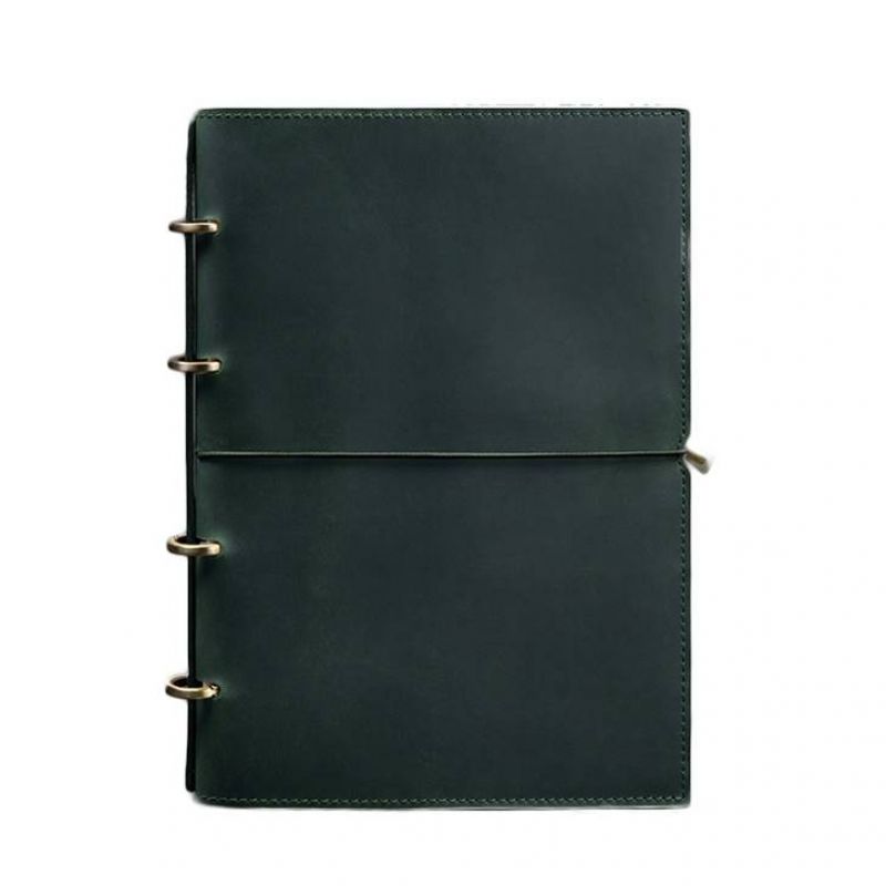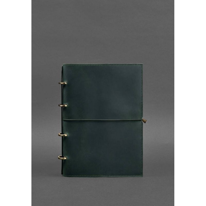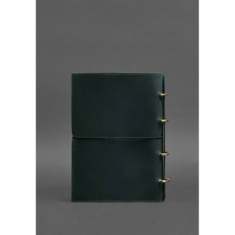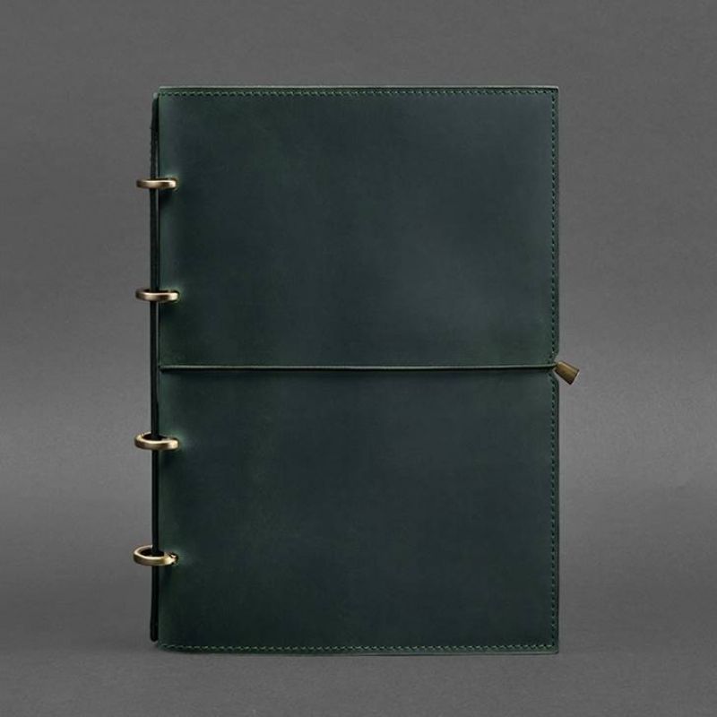 Кожаный блокнот А4 на кольцах (софт-бук) 9.0 в мягкой обложке зеленый Crazy Horse
