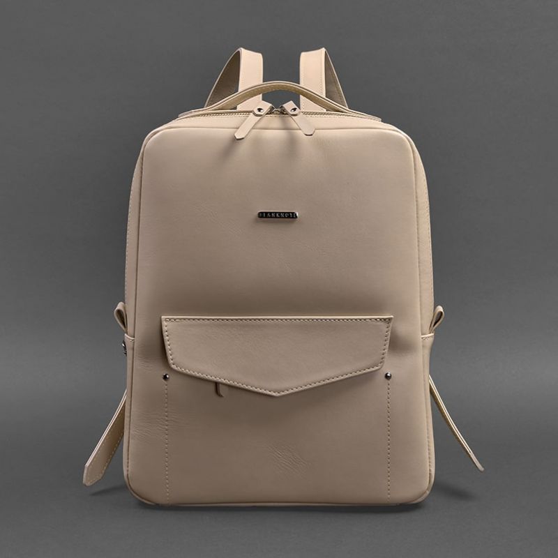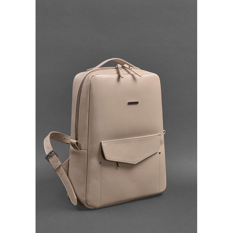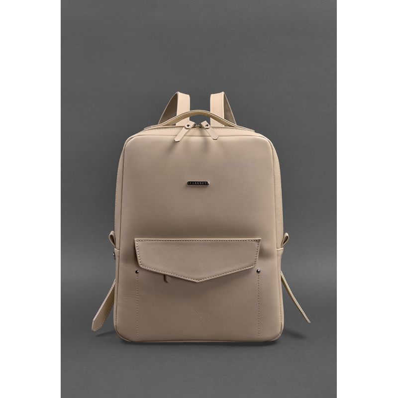 Кожаный женский городской рюкзак на молнии Cooper светло-бежевый краст