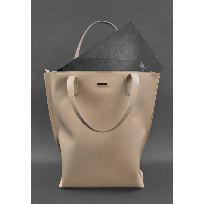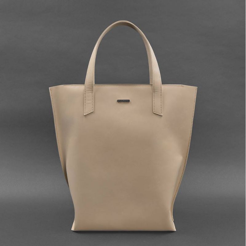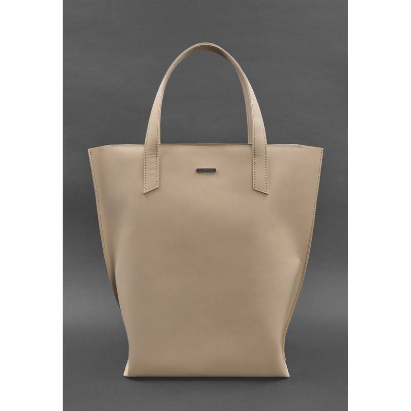 Кожаная женская сумка шоппер D.D. светло-бежевая краст