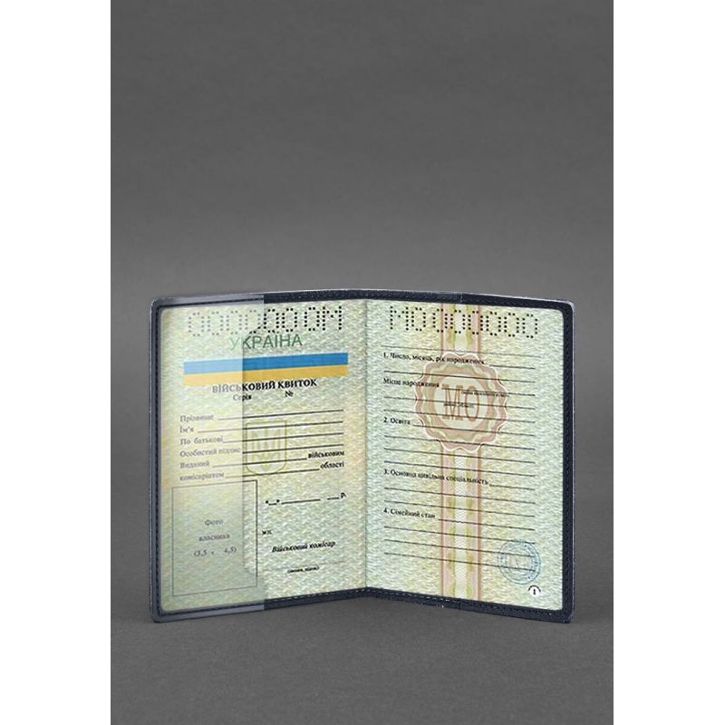 Кожаная обложка для военного билета 7.0 темно-синяя