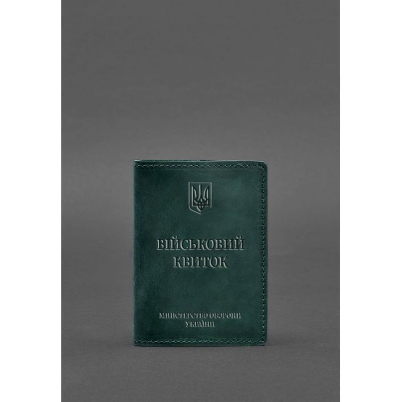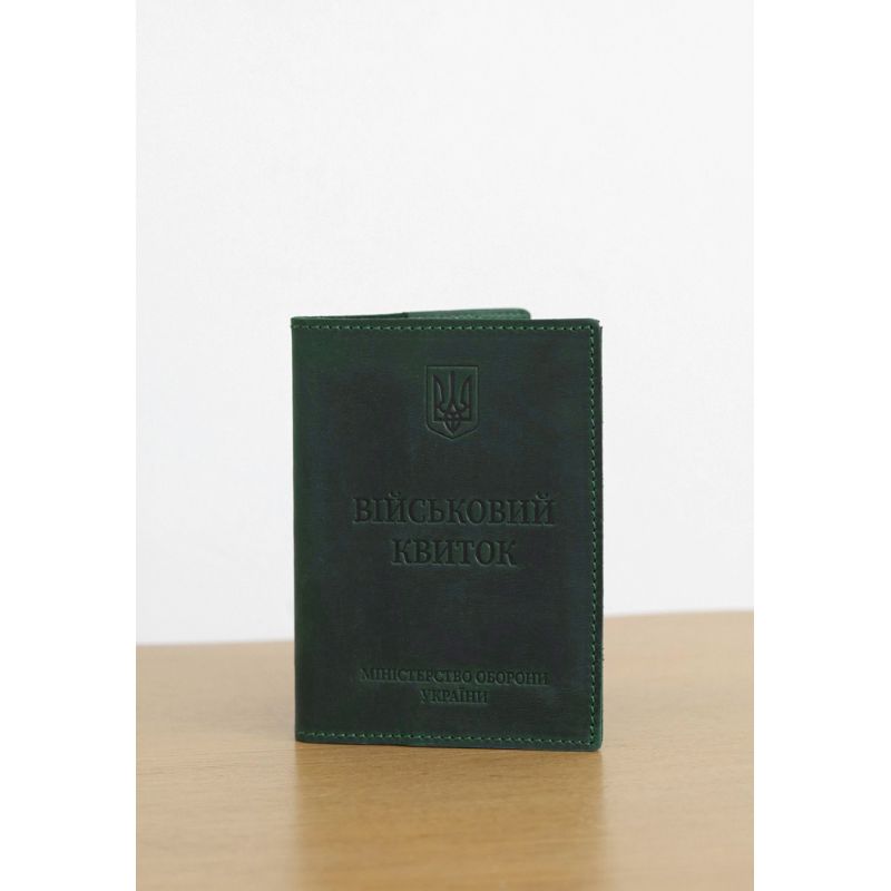 Кожаная обложка для военного билета 7.0 зеленая Crazy Horse