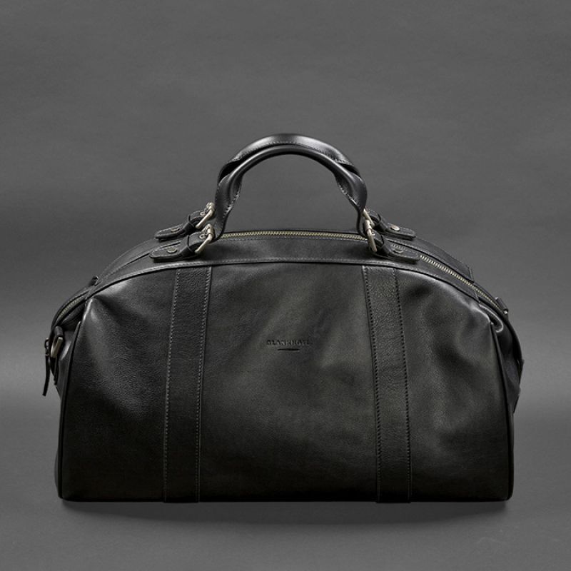 Кожаная дорожная сумка Люкс Черная (BN-BAG-43-g) Сумка Люкс (BN-BAG-43-g) изготовлена из натуральной кожи краст премиального качества. Это плотная натуральная кожа, которая хорошо держит форму и имеет приятную гладкую поверхность. Внутри сумки одно просторное отделение и несколько карманов для мелочей. Также есть один наружный карман, который закрывается молнией. Кожаные сумки женские из натуральной кожи краст не требуют сложного дополнительного ухода. Удобные кожаные ручки позволяют носить аксессуар в руке. Кроме того, сумка оснащена съемным плечевым ремнем. Кожаная дорожная сумка Люкс  — это превосходный выбор для людей, которые ищут надежный и качественный аксессуар для путешествий и повседневной жизни. Вы можете купить эту женскую/мужскую сумку из натуральной кожи в Киеве, на сайте Blanknote.ua или в нашем шоу-руме. Доставка по Украине осуществляется Новой Почтой. Также мы отправляем заказы за кордон. Женские и мужские сумки кожаные БланкНот Все наши сумки изготовлены вручную. К любой сумке вы легко можете подобрать на нашем сайте кошелек или кард-кейс из такого же типа кожи. Если необходимо, то наши мастера могут изготовить изделие под заказ. Купить кожаную женскую сумку в Украине никогда не было так легко. Просто посетите сайт Blanknote.ua и оформите заказ онлайн. Мы гарантируем быструю доставку и качественный сервис, чтобы вы остались довольны своей покупкой и наслаждались ею в течение долгого времени. Сделайте правильный выбор и приобретите эту превосходную сумку, которая будет служить вам верой и правдой на протяжении многих лет. Гарантия на сумку – 3 года с момента покупки. Фурнитура и комплектация может изменяться производителем