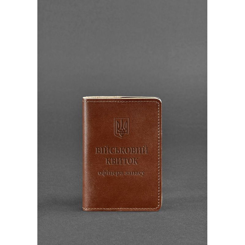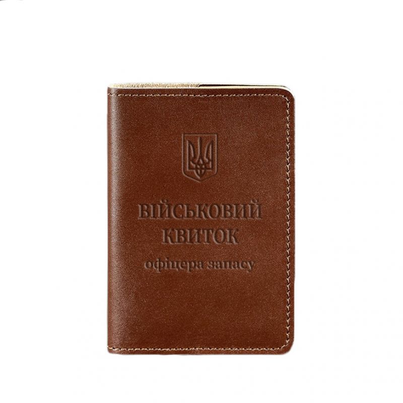 Кожаная обложка для военного билета офицера запаса 8.0 светло-коричневая