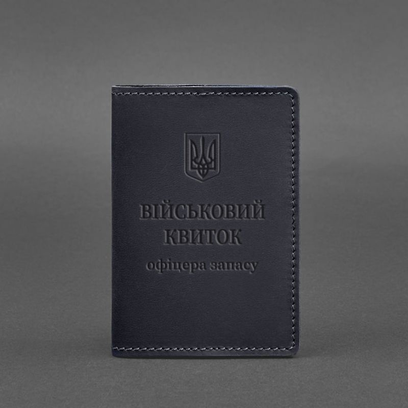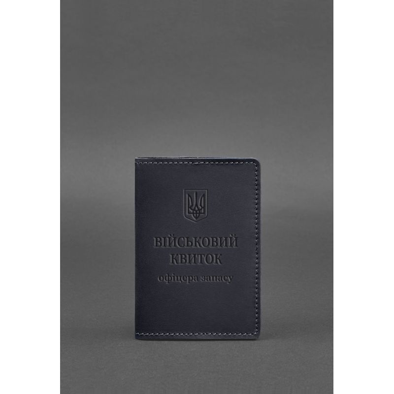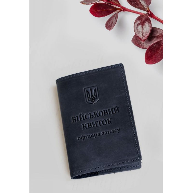 Кожаная обложка для военного билета офицера запаса 8.0 темно-синяя Crazy Horse
