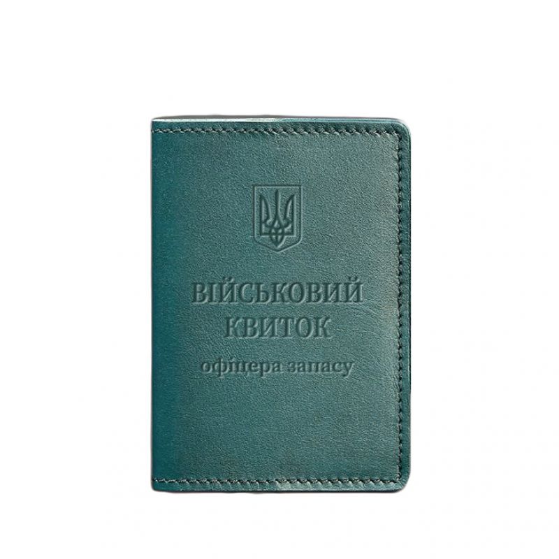 Кожаная обложка для военного билета офицера запаса 8.0 зеленая