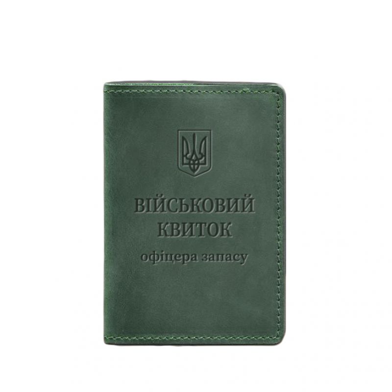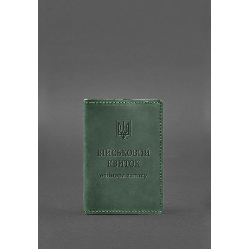 Кожаная обложка для военного билета офицера запаса 8.0 зеленая Crazy Horse