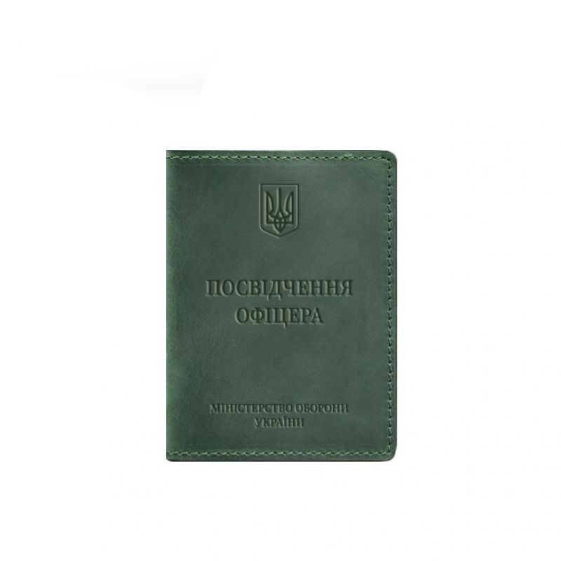 Кожаная обложка для удостоверения офицера 9.0 зеленая Crazy Horse