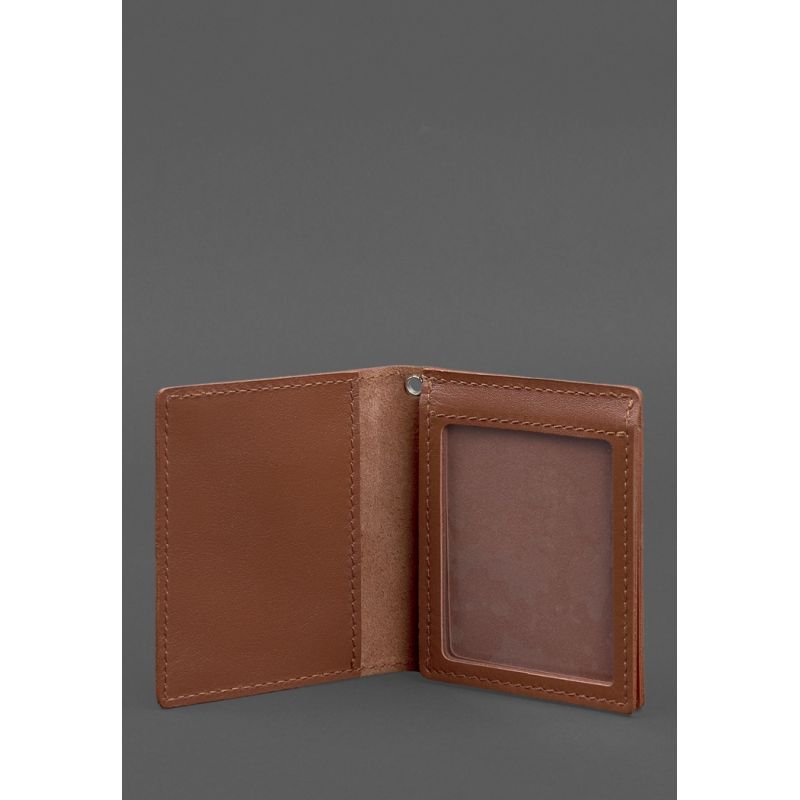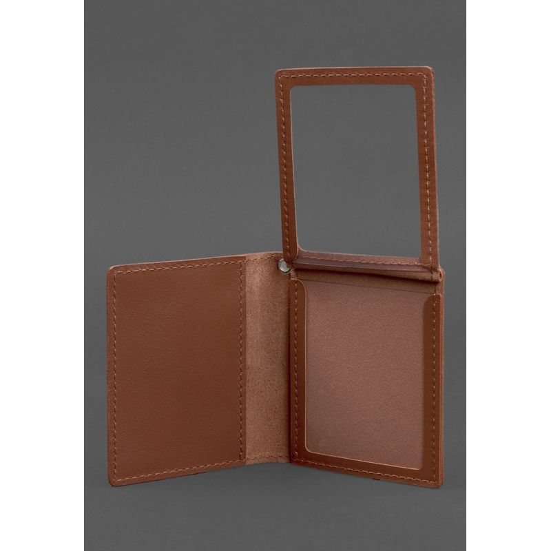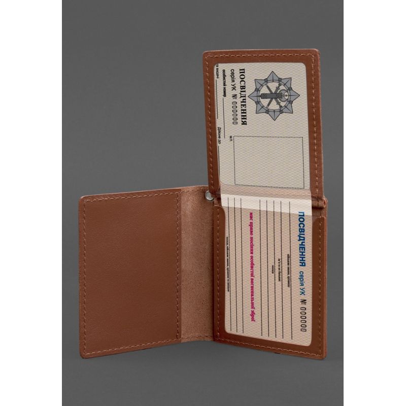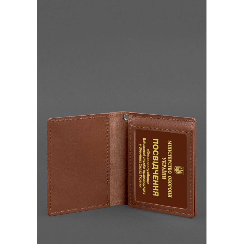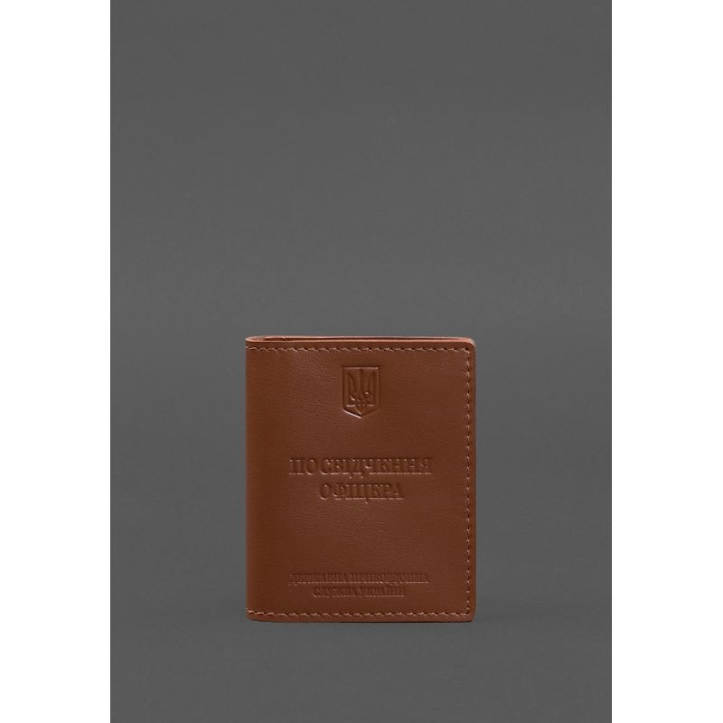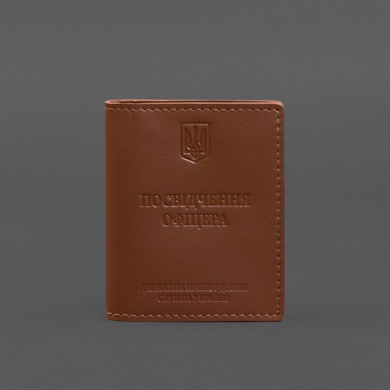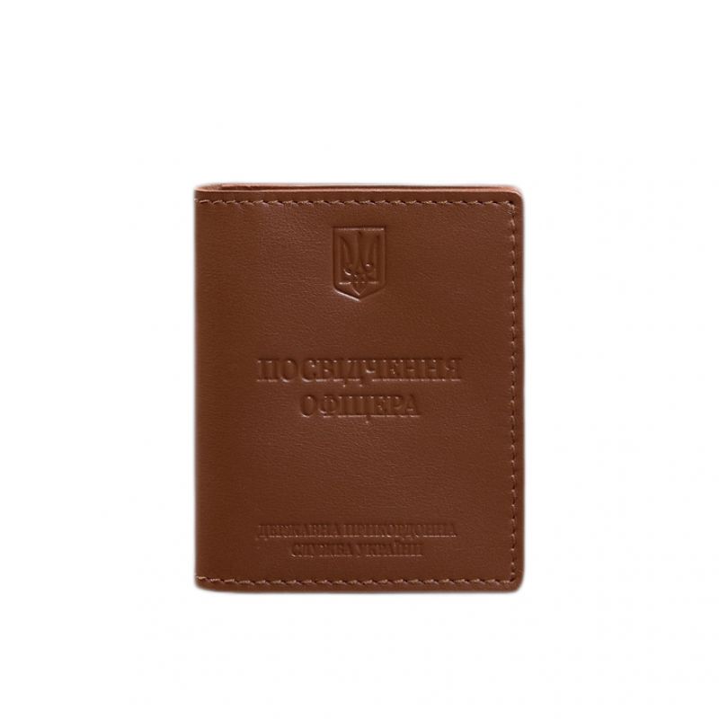 Кожаная обложка для удостоверения офицера ДПСУ (три кармана) светло-коричневая