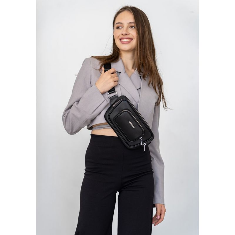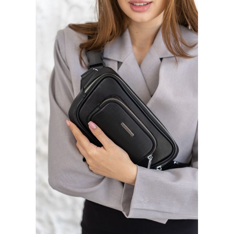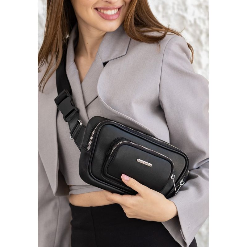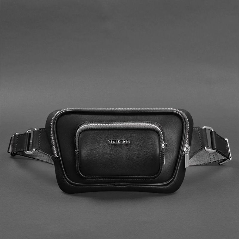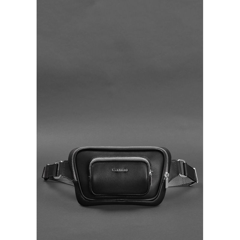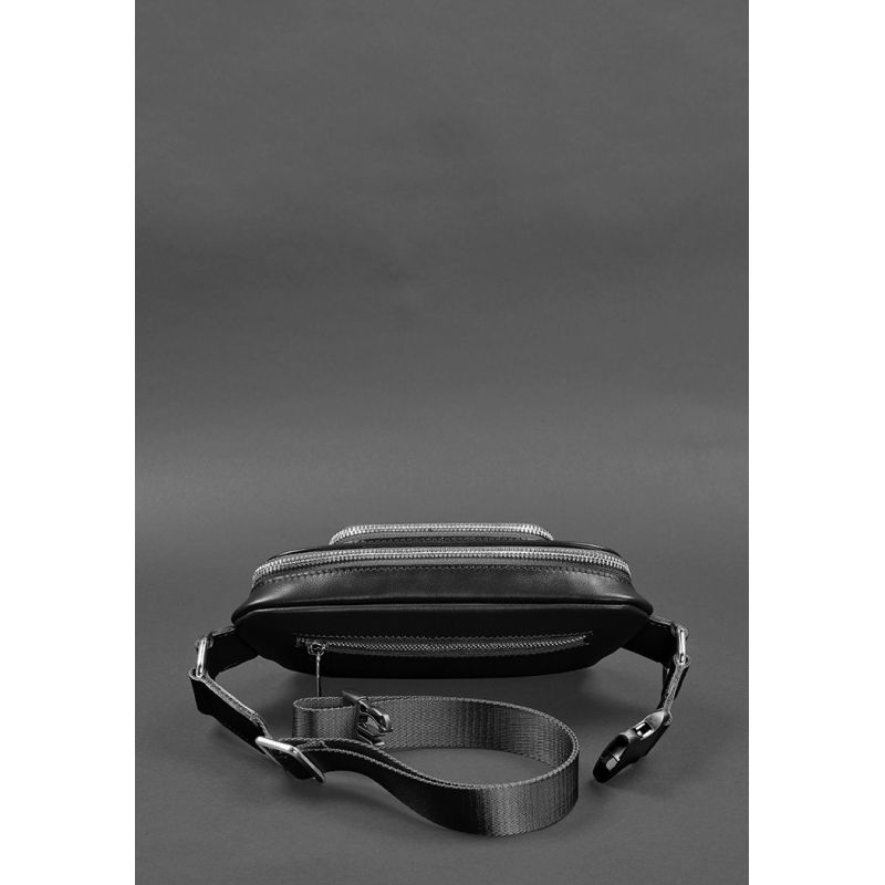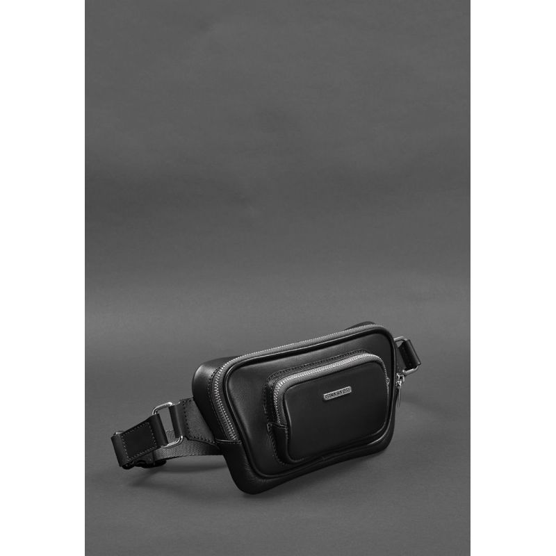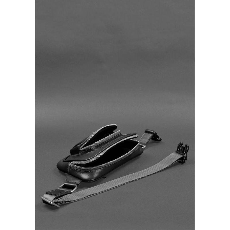 Кожаная поясная сумка-бананка Трапеция черная
