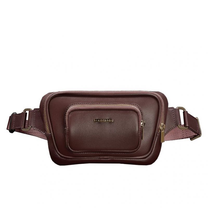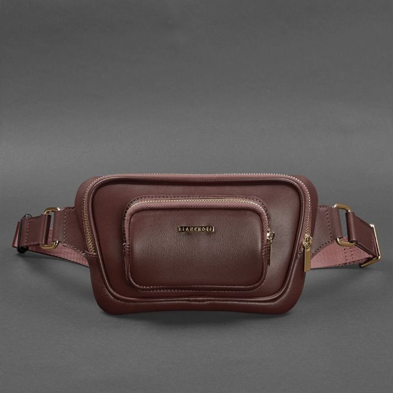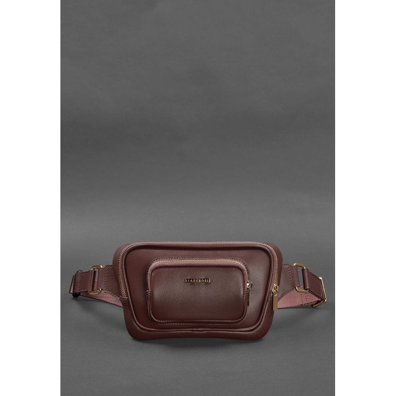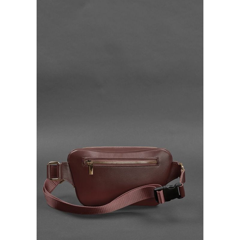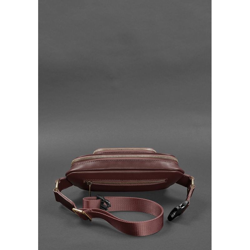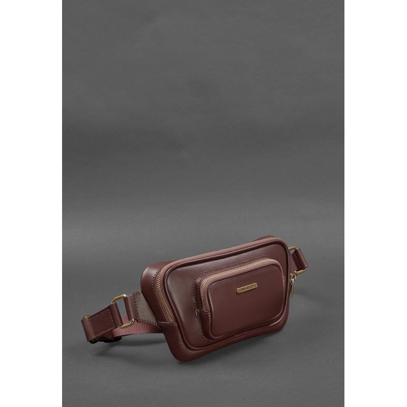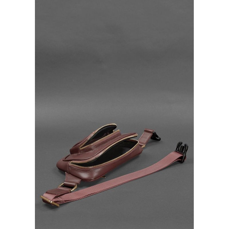 Кожаная поясная сумка-бананка Трапеция бордовая