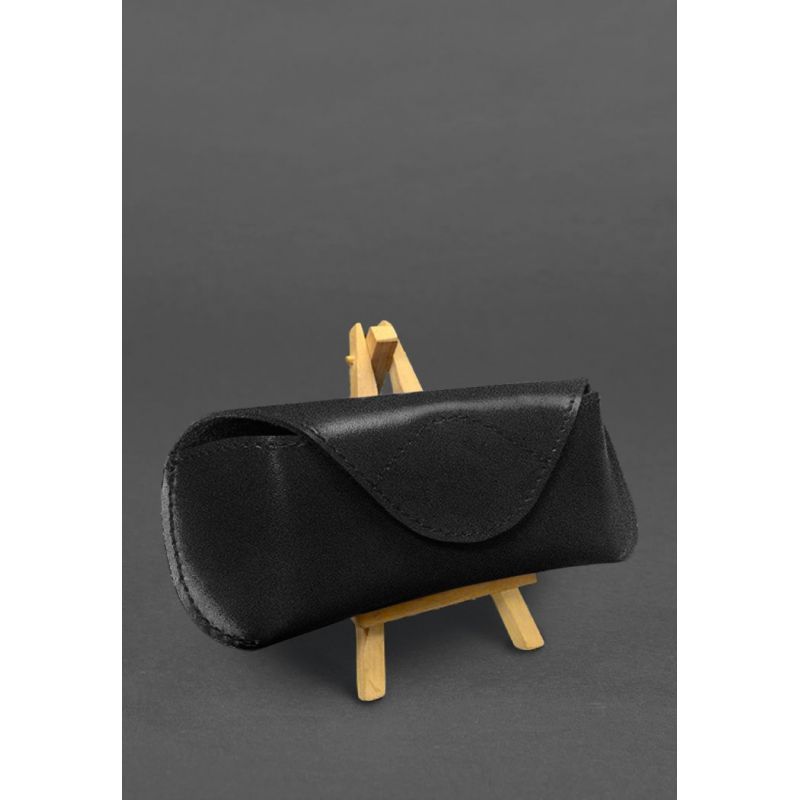 Кожаный чехол для очков с клапаном на магните Черный Краст