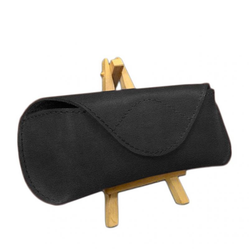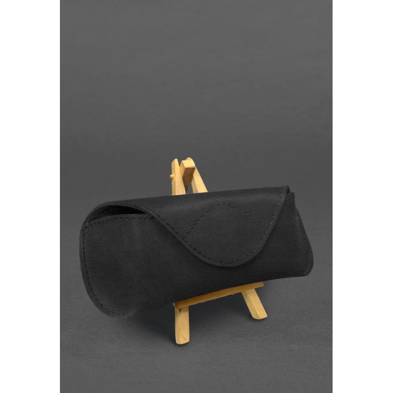 Кожаный чехол для очков с клапаном на магните Черный Crazy Horse