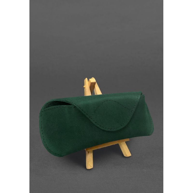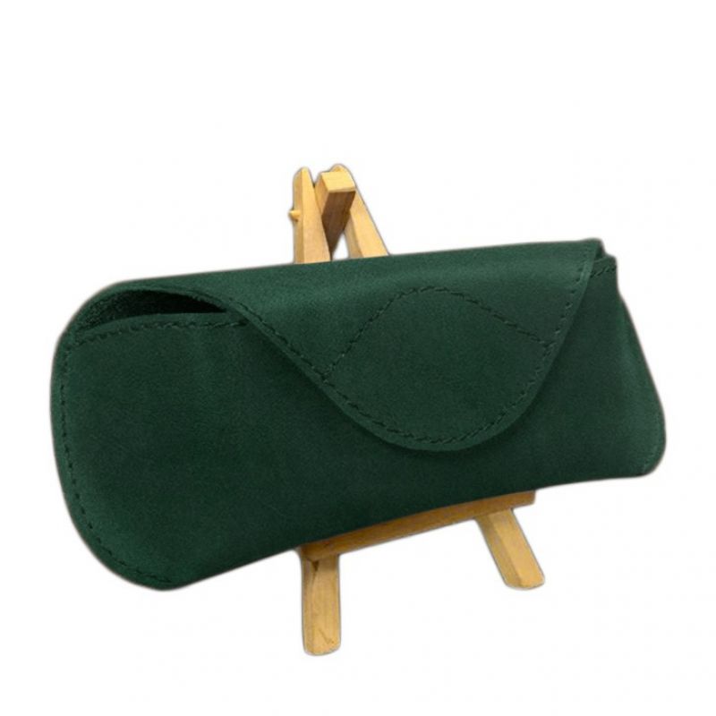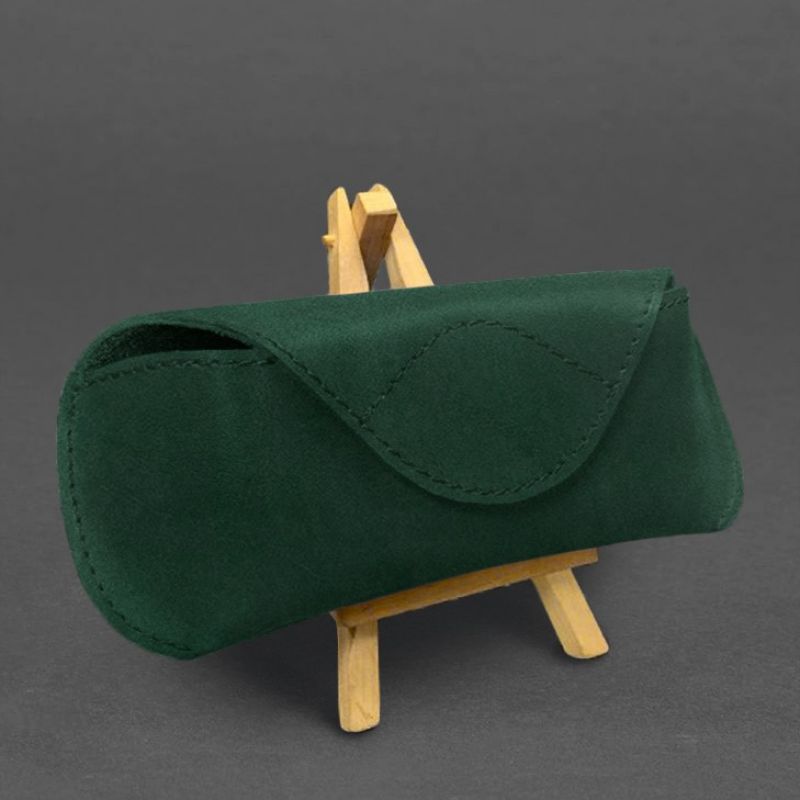 Кожаный чехол для очков с клапаном на магните Зеленый Crazy Horse