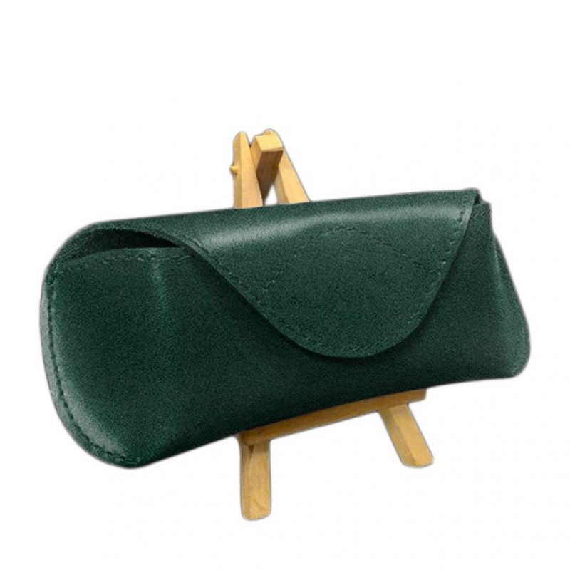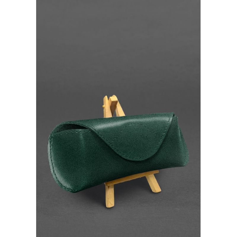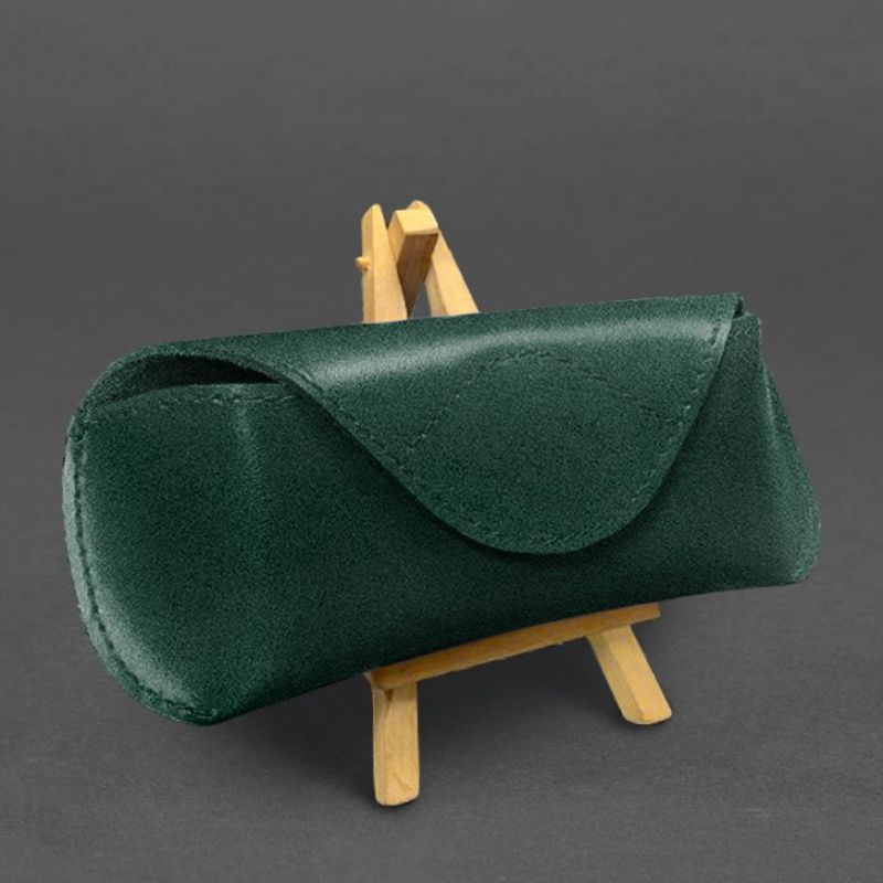 Кожаный чехол для очков с клапаном на магните Зеленый Краст