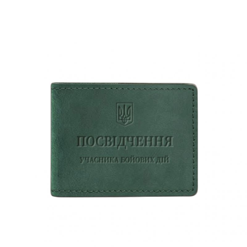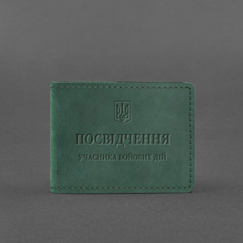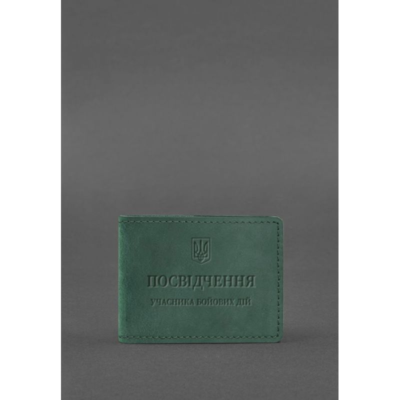 Кожаная обложка для удостоверения участника боевых действий (УБД) зеленая Crazy Horse