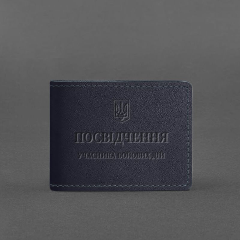 Кожаная обложка для удостоверения участника боевых действий (УБД) темно-синяя